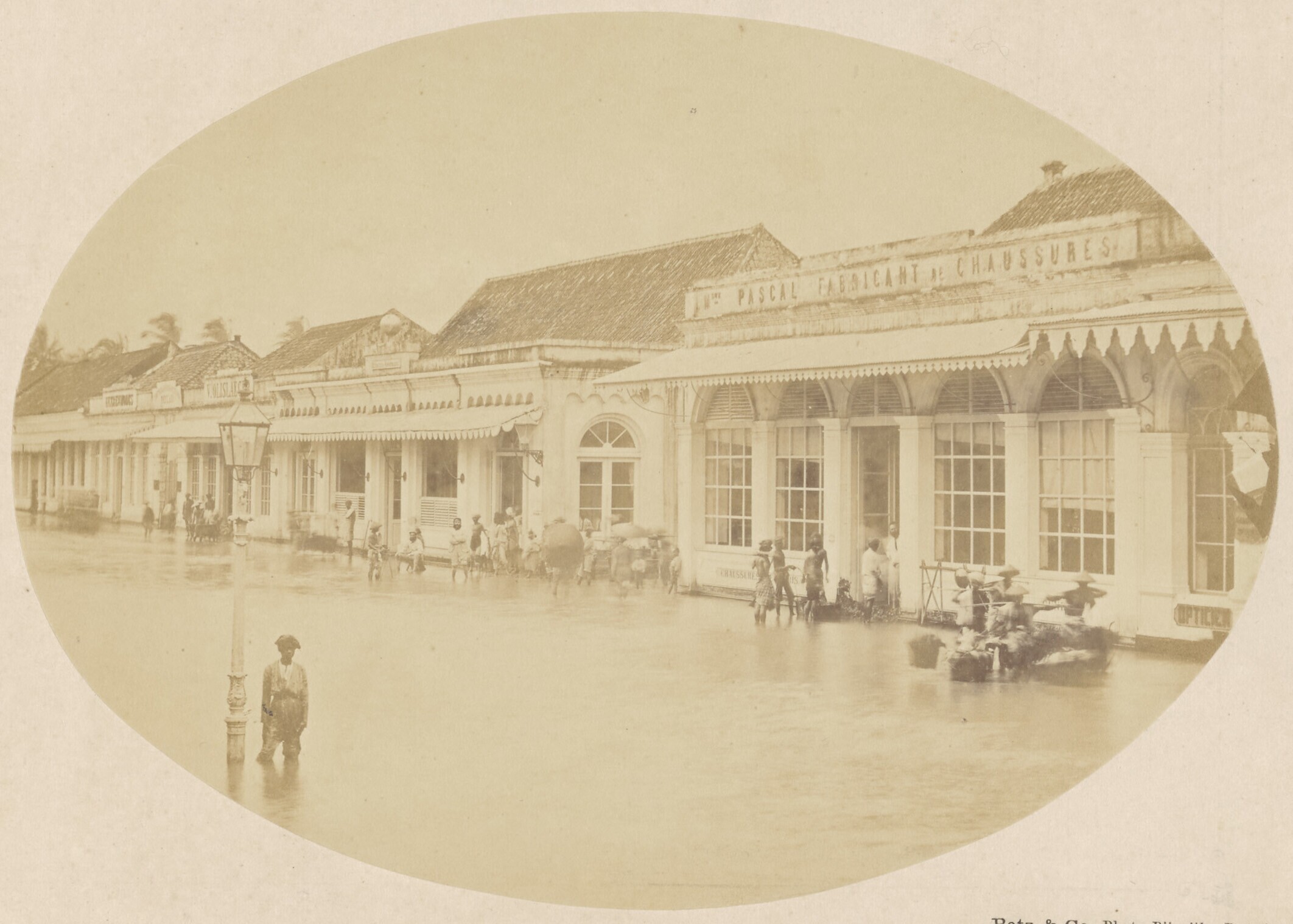 The 'Oger Frères' shop in a flooded street in Batavia