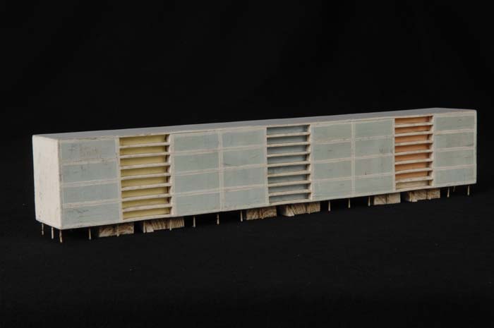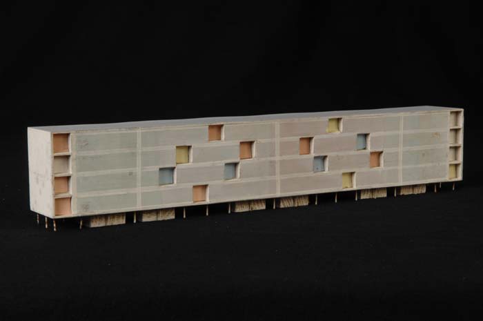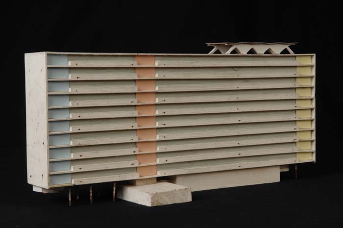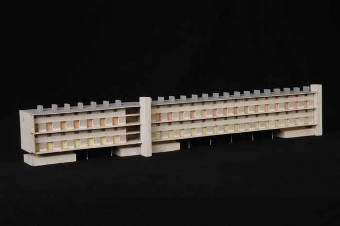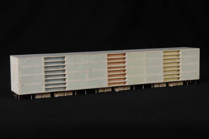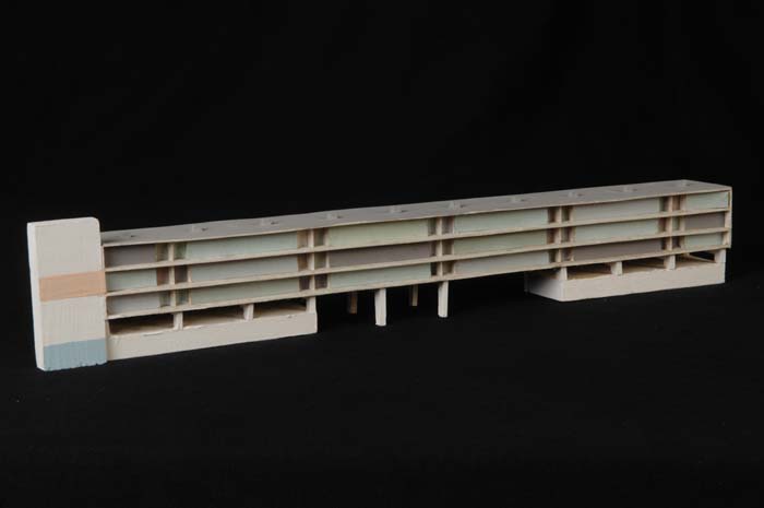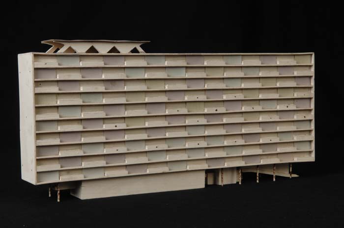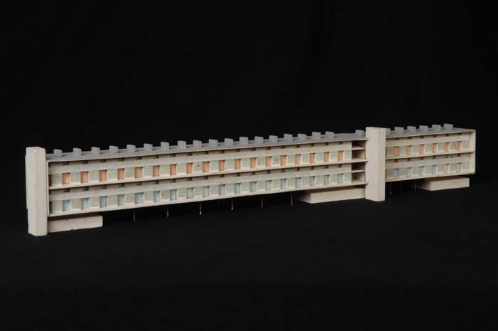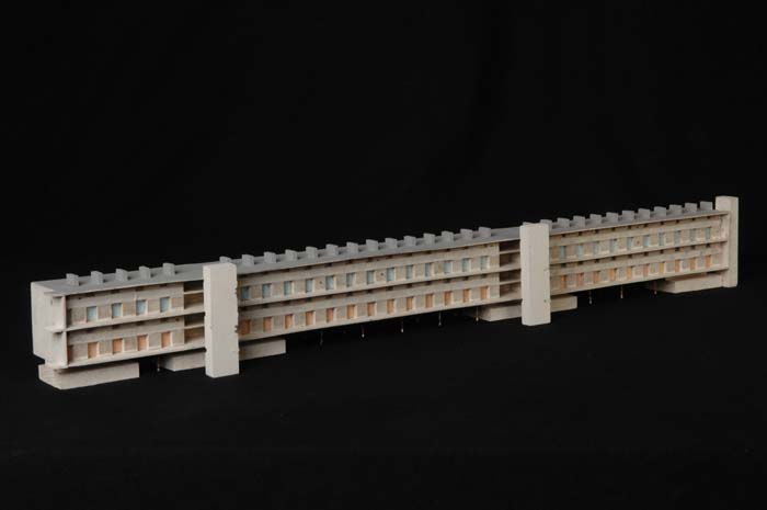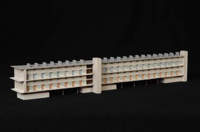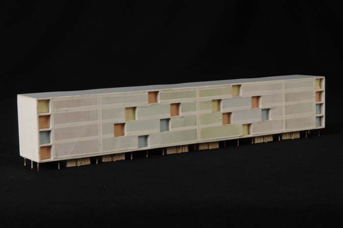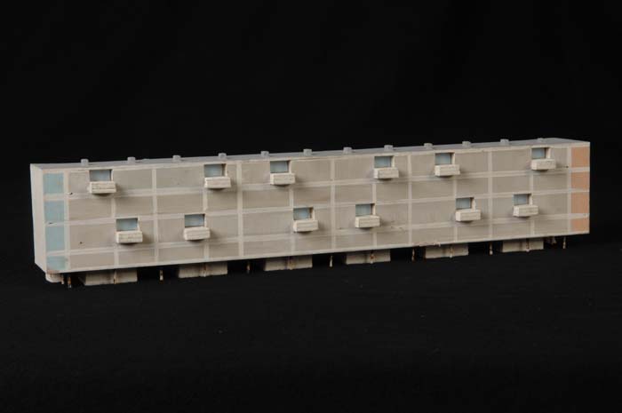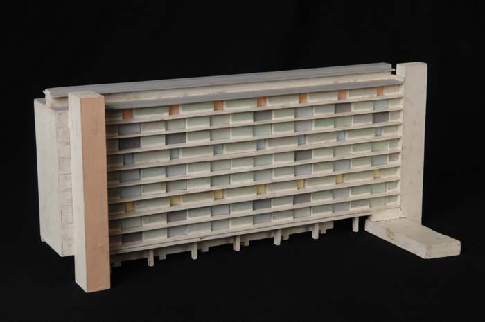 Maquette (1:200) van een flatgebouw, onderdeel van "...