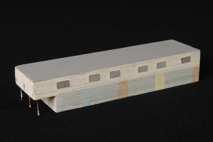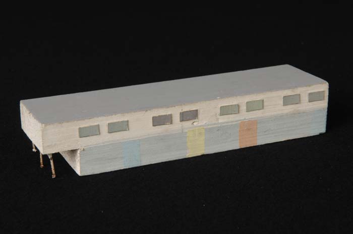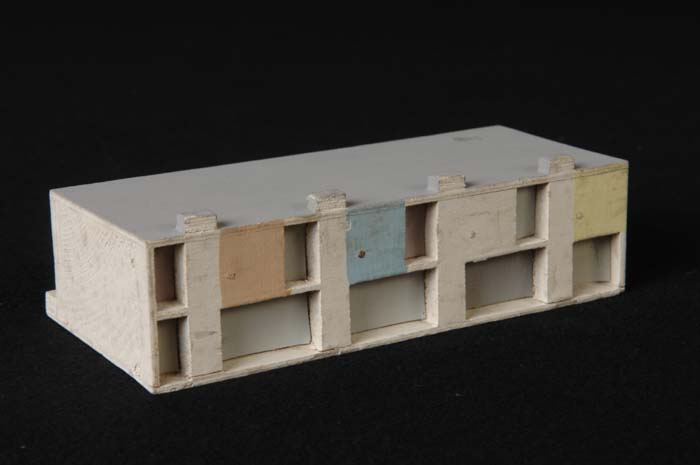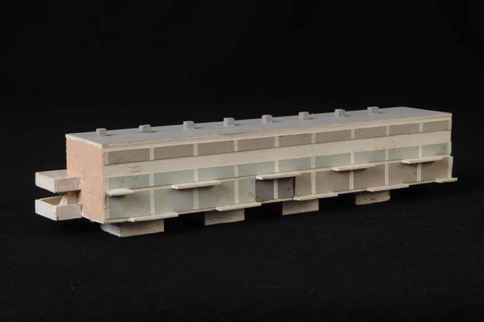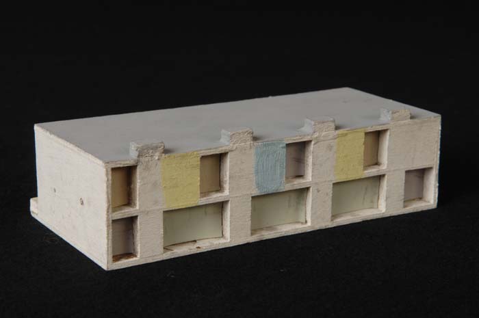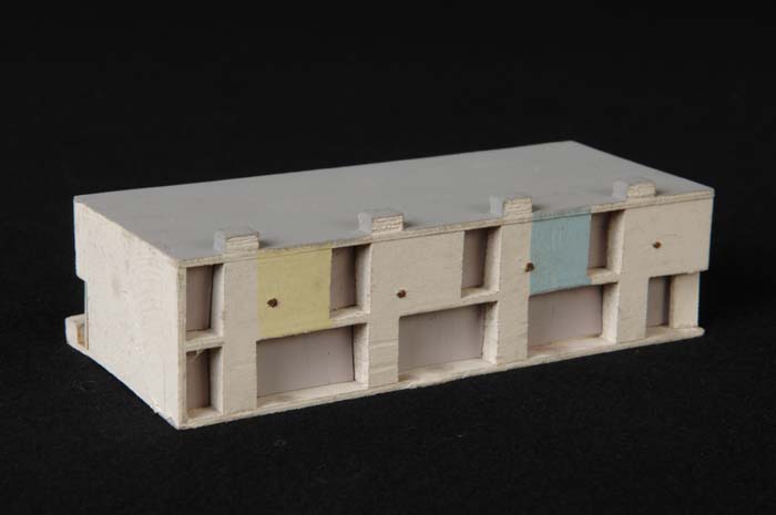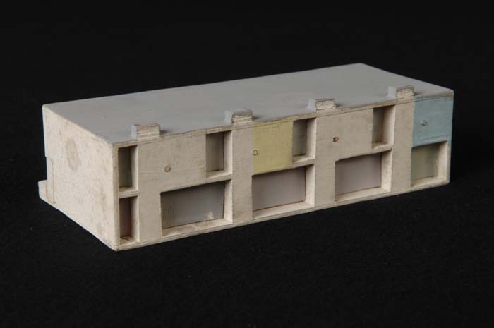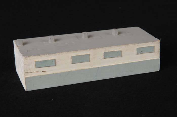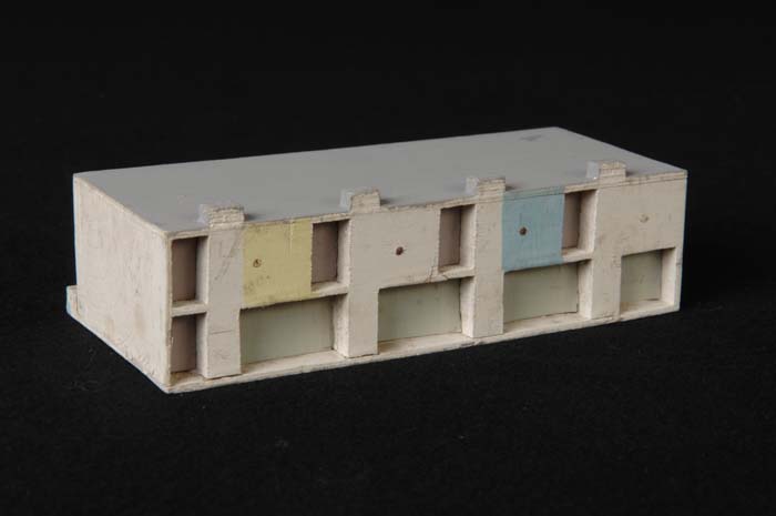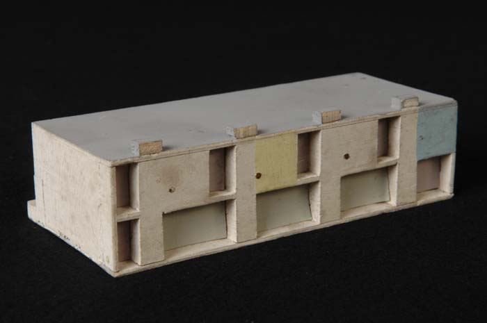 Maquette (1:200) van gebouw van twee verdiepingen, o...