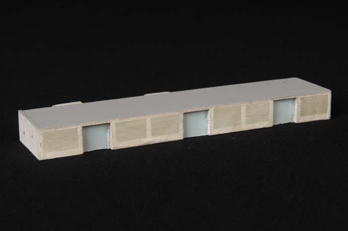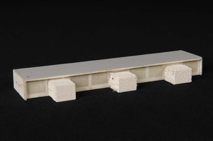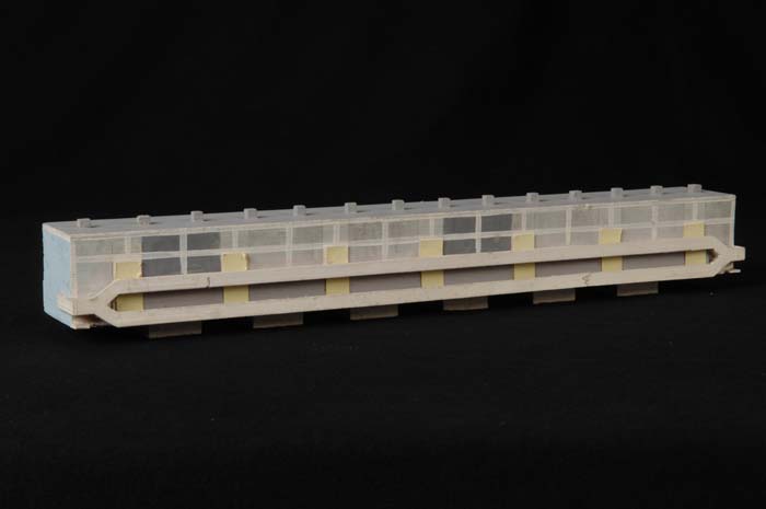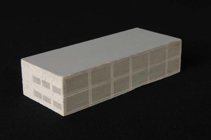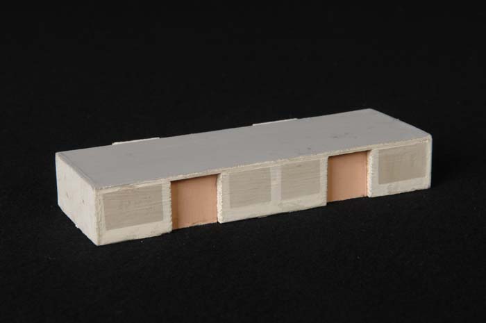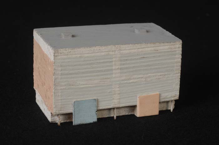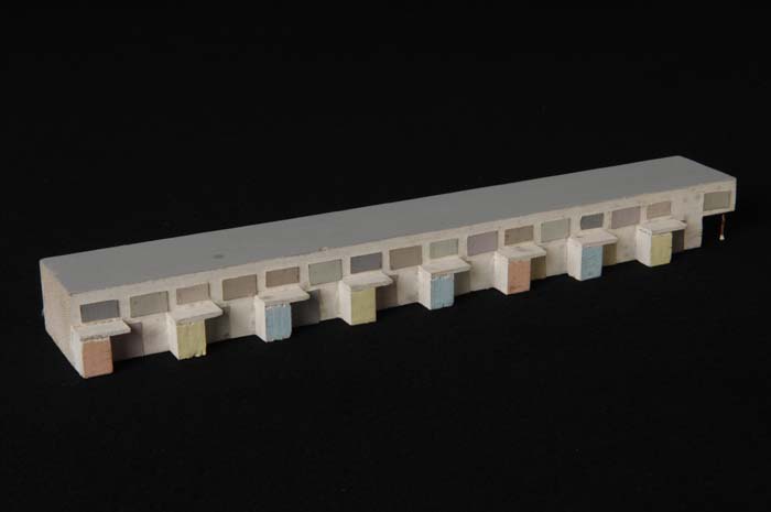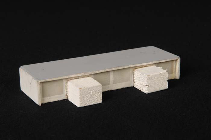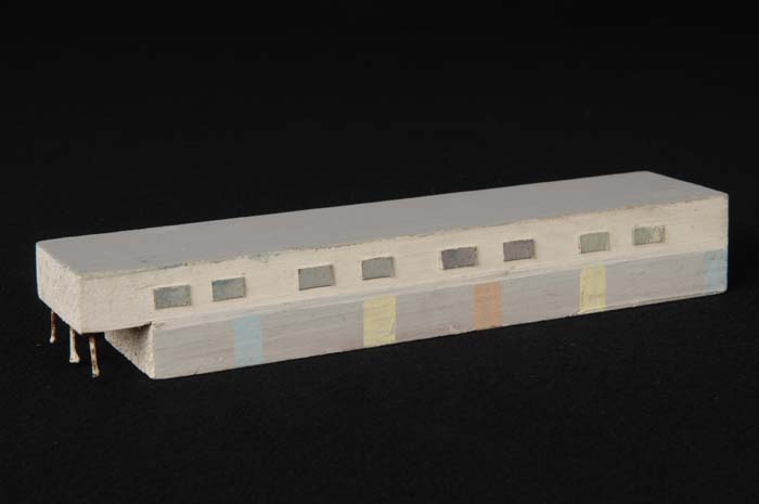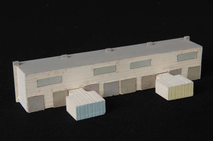 Maquette (1:200) van gebouw van twee verdiepingen, o...