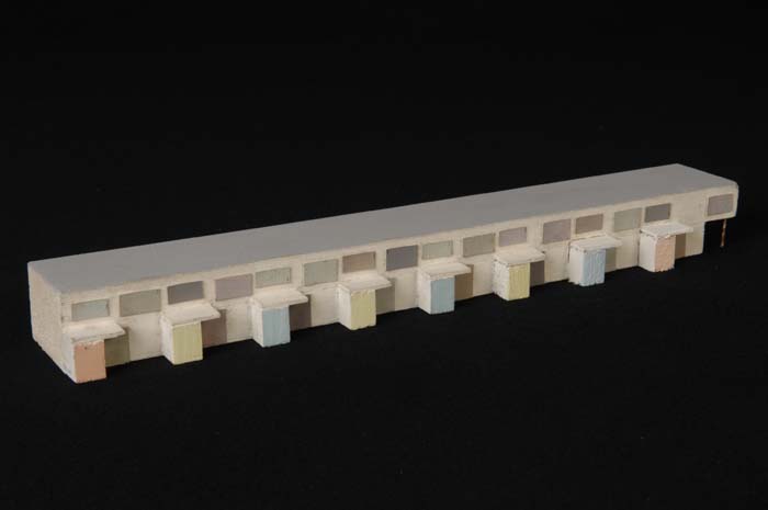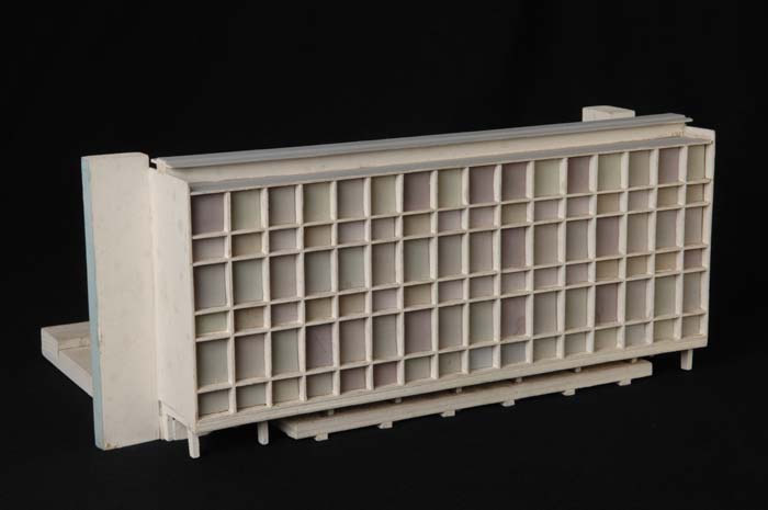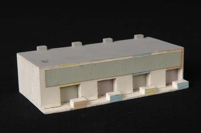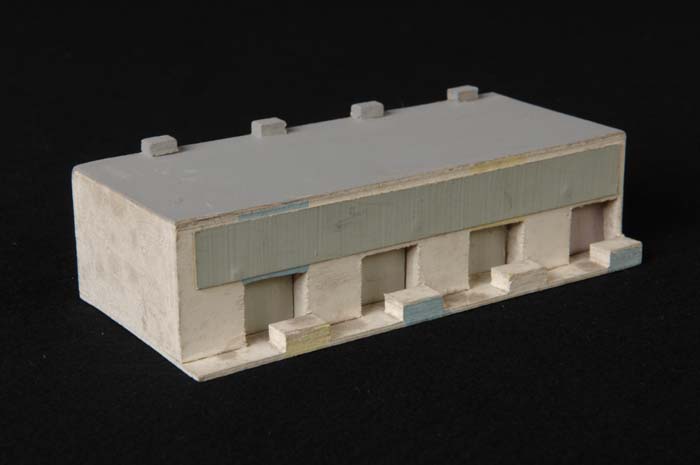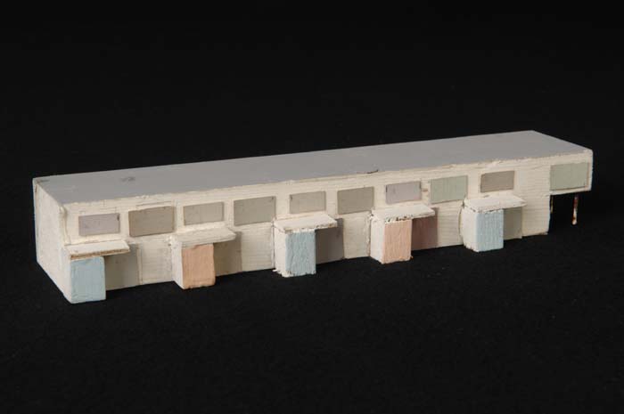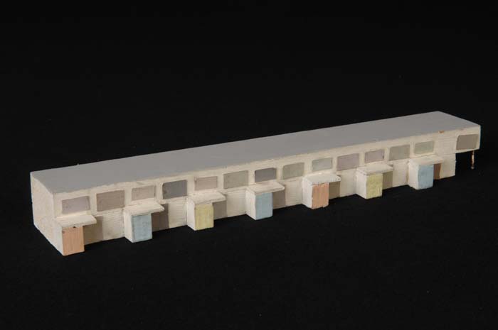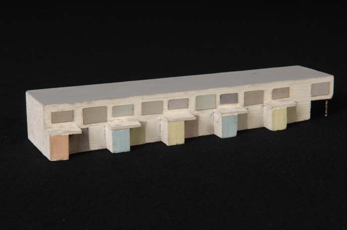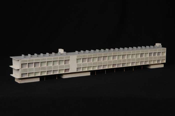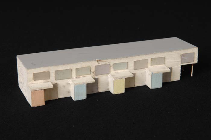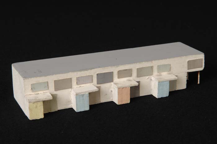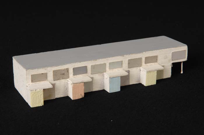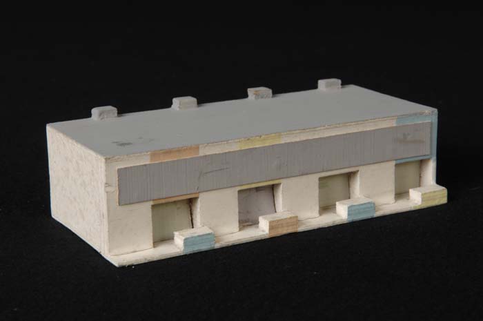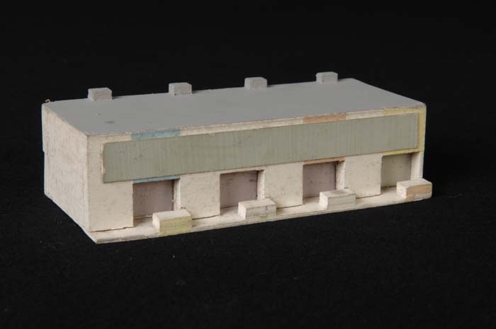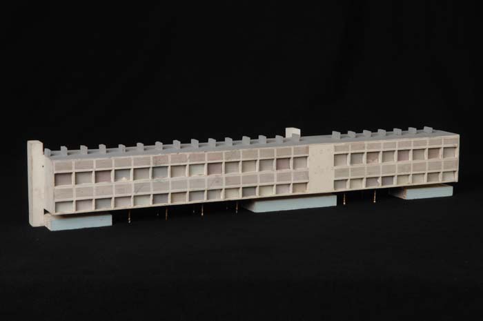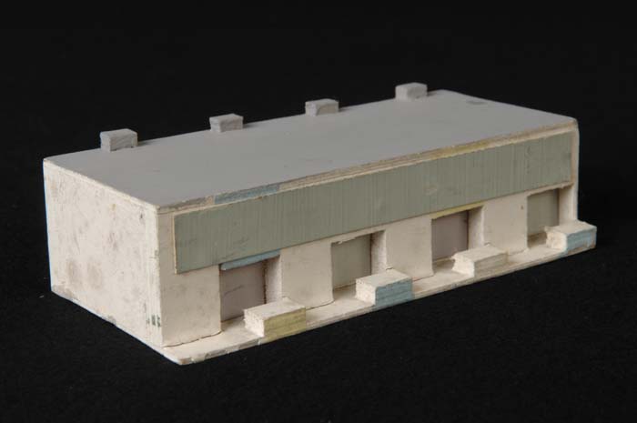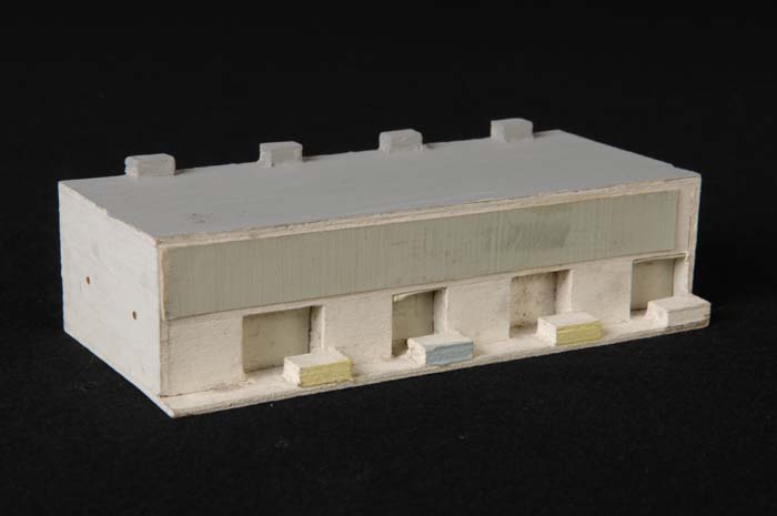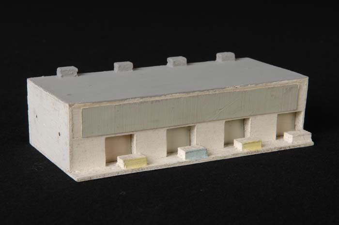 Maquette (1:200) van een laag gebouw, onderdeel van ...