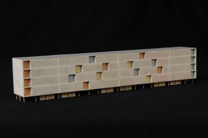 Maquette (1:200) van een woongebouw, onderdeel van "...