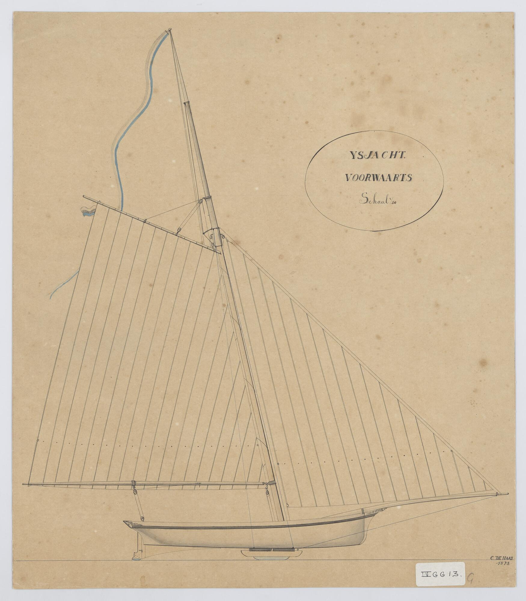 Zijaanzicht van het ijsjacht Voorwaarts, 1878