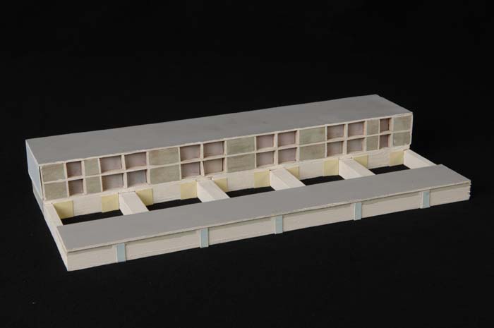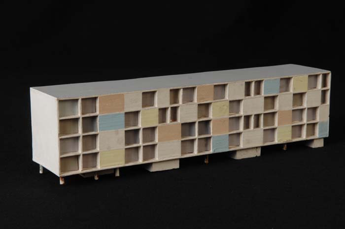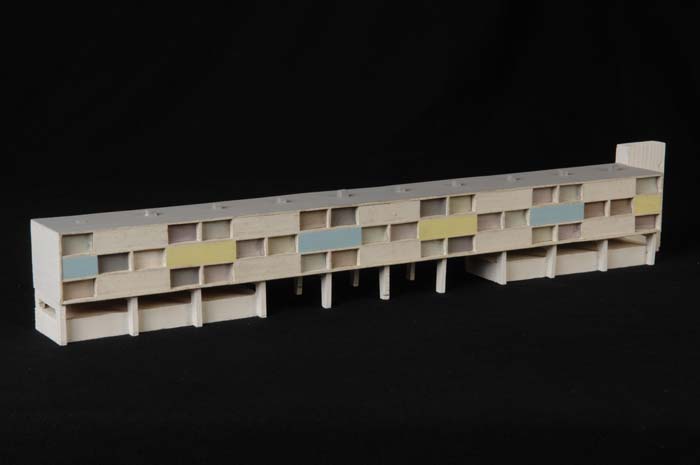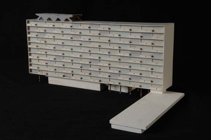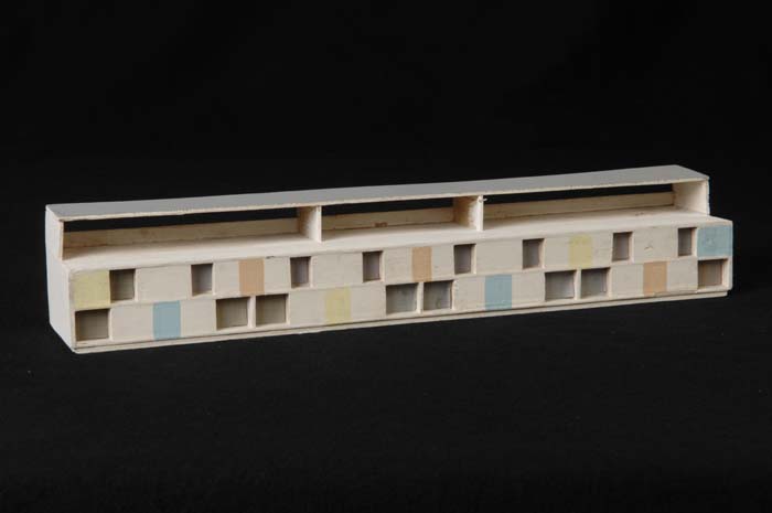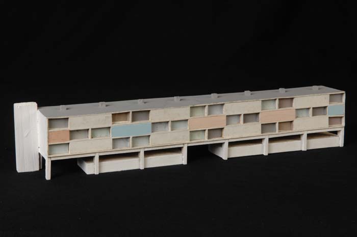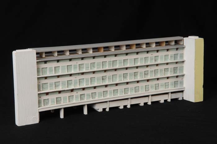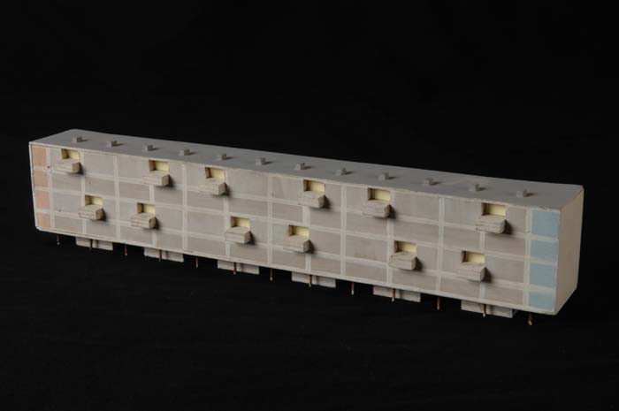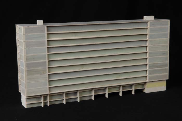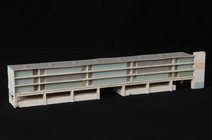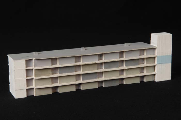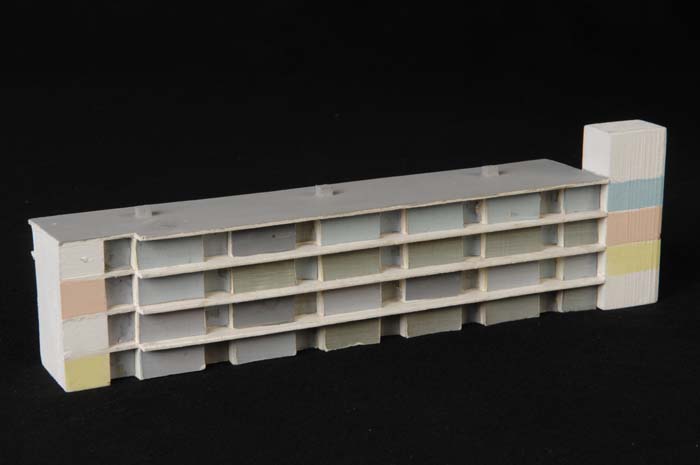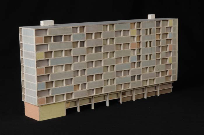 Maquette (1:200) van een flatgebouw, onderdeel van "...