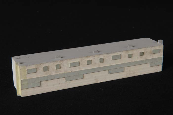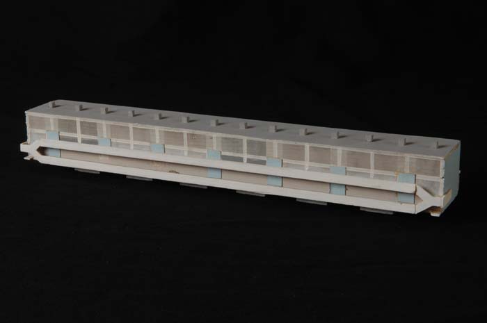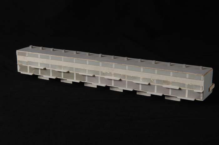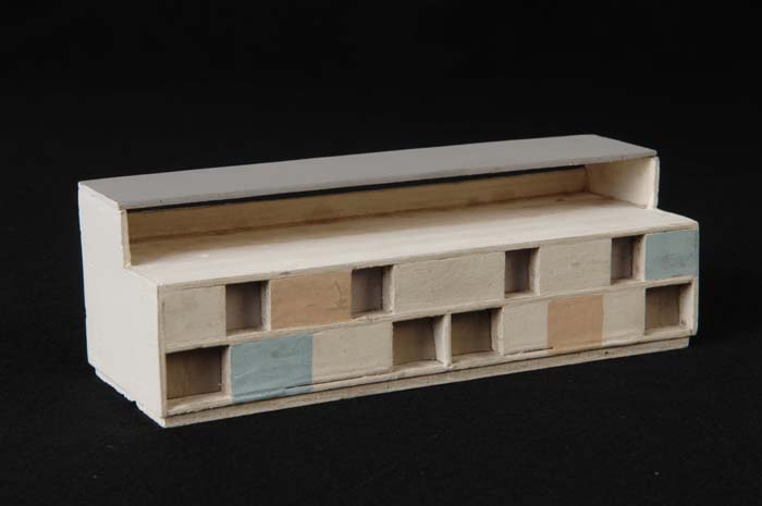 Maquette (1:200) van gebouw van twee verdiepingen, o...