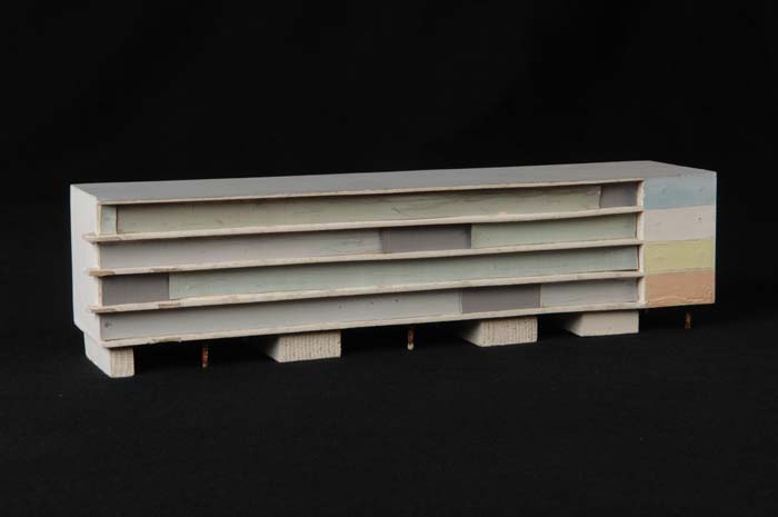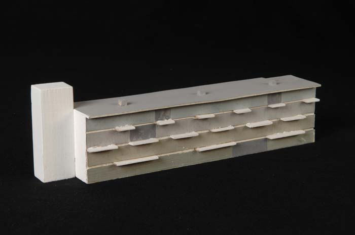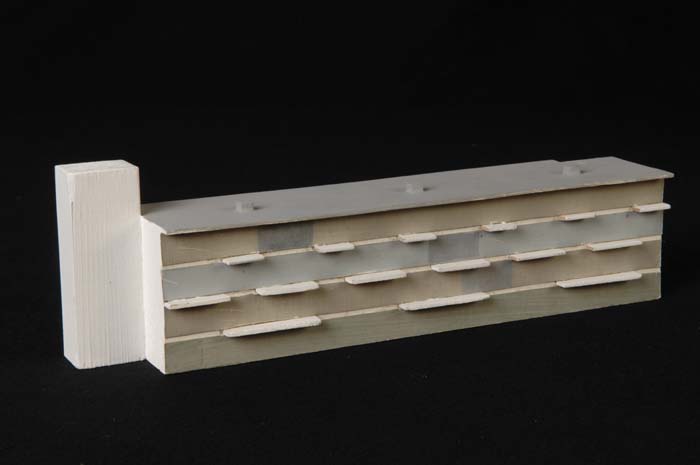 Maquette (1:200) van flat van zes verdiepingen, onde...