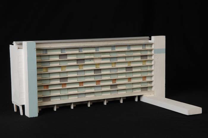 Maquette (1:200) van een woongebouw, onderdeel van "...