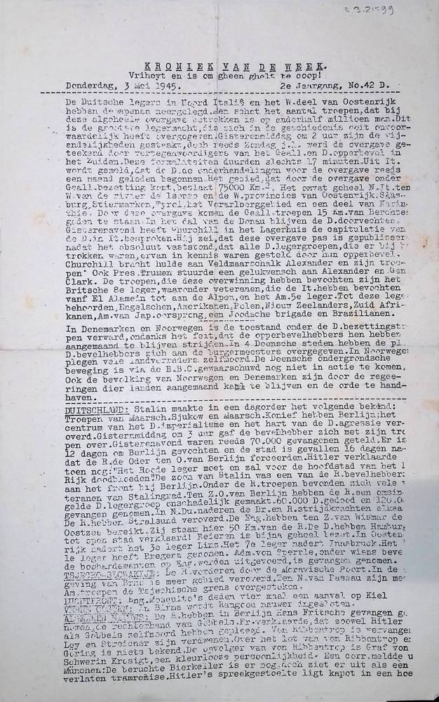 Kroniek van de week. 2de jaargang, No 42D. 3 mei1945