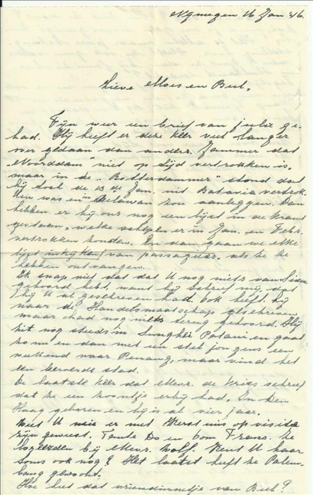 Brief van Ank geschreven te Nijmegen 16 januari 1946...