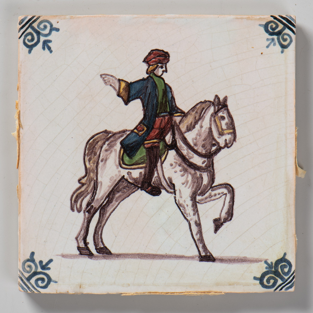 tegel van aardewerk met tinglazuur, voorstellende: h...