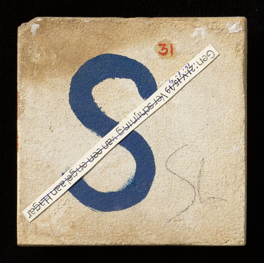 Tegel van keramiek met tinglazuur, voorstellende: De...