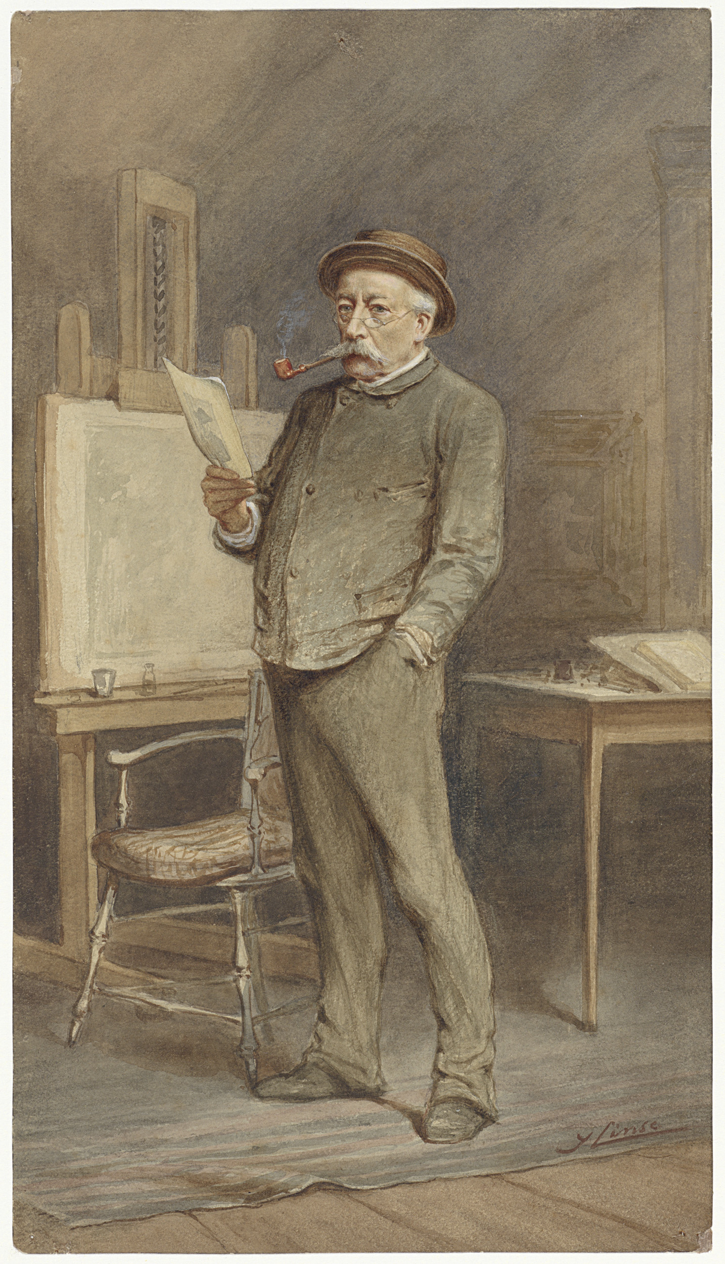Portret van Charles Rochussen in zijn atelier