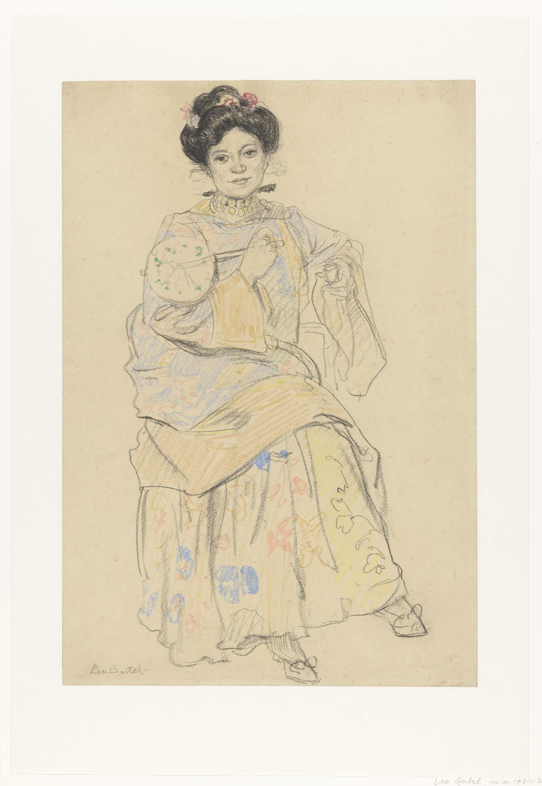 Zittende vrouw in Japanse kleding