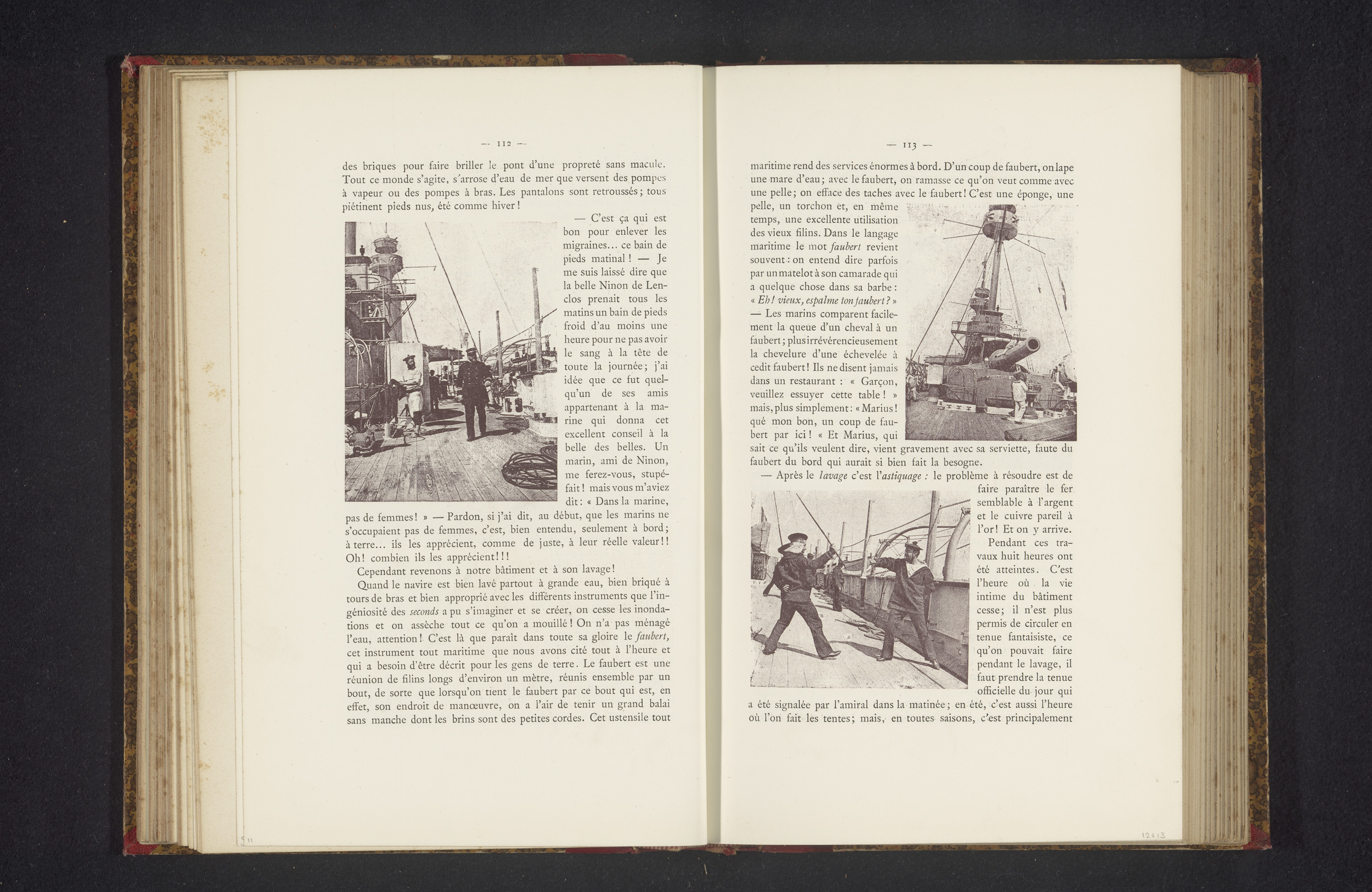 Het schrobben van het dek aan boord van een oorlogss...
