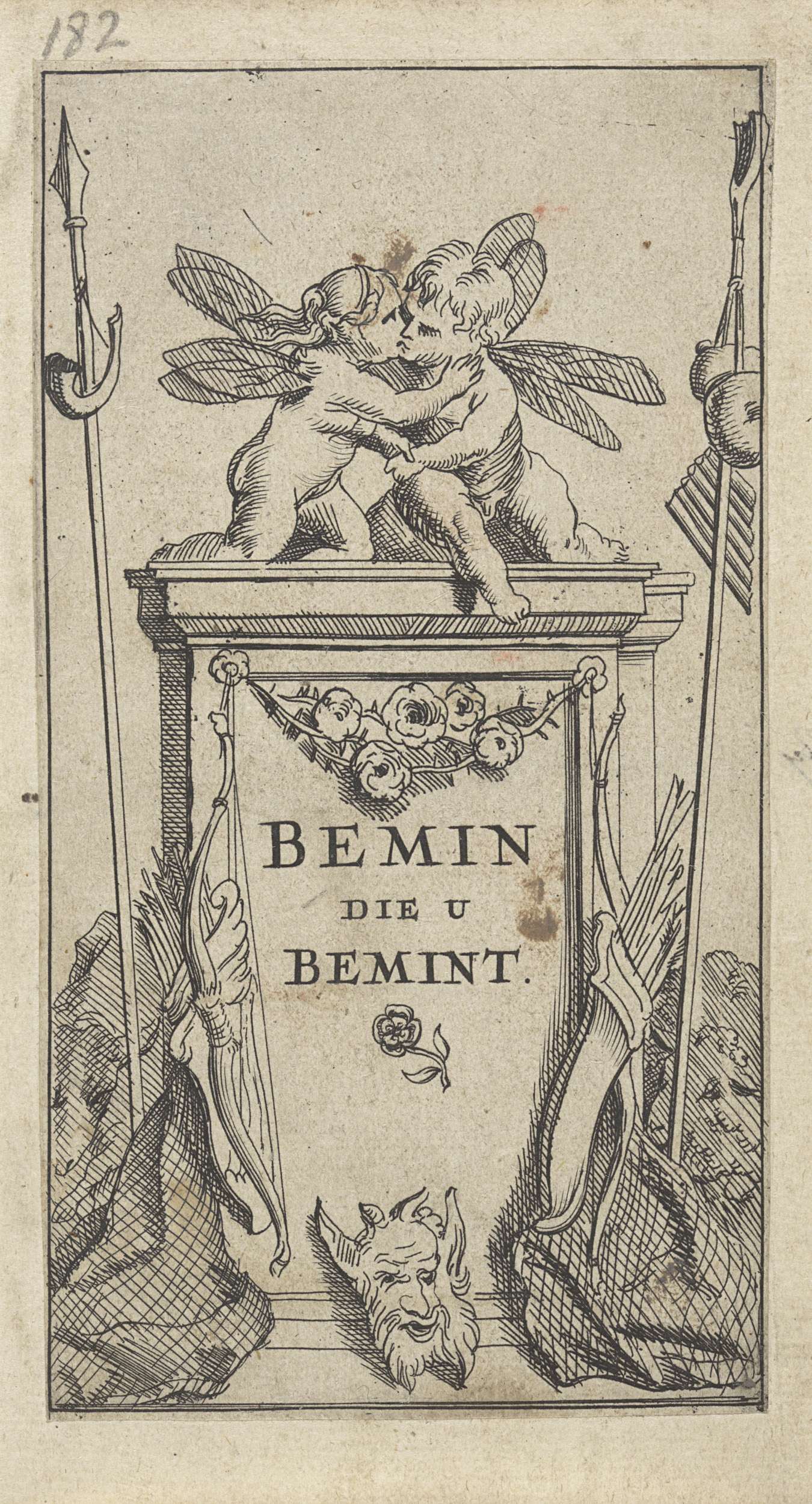 Twee putti omhelzen elkaar op een sokkel