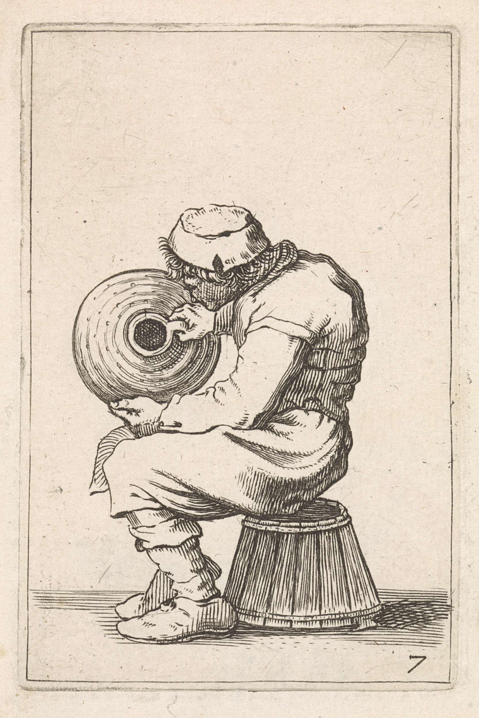 Zittende man met een grote kan