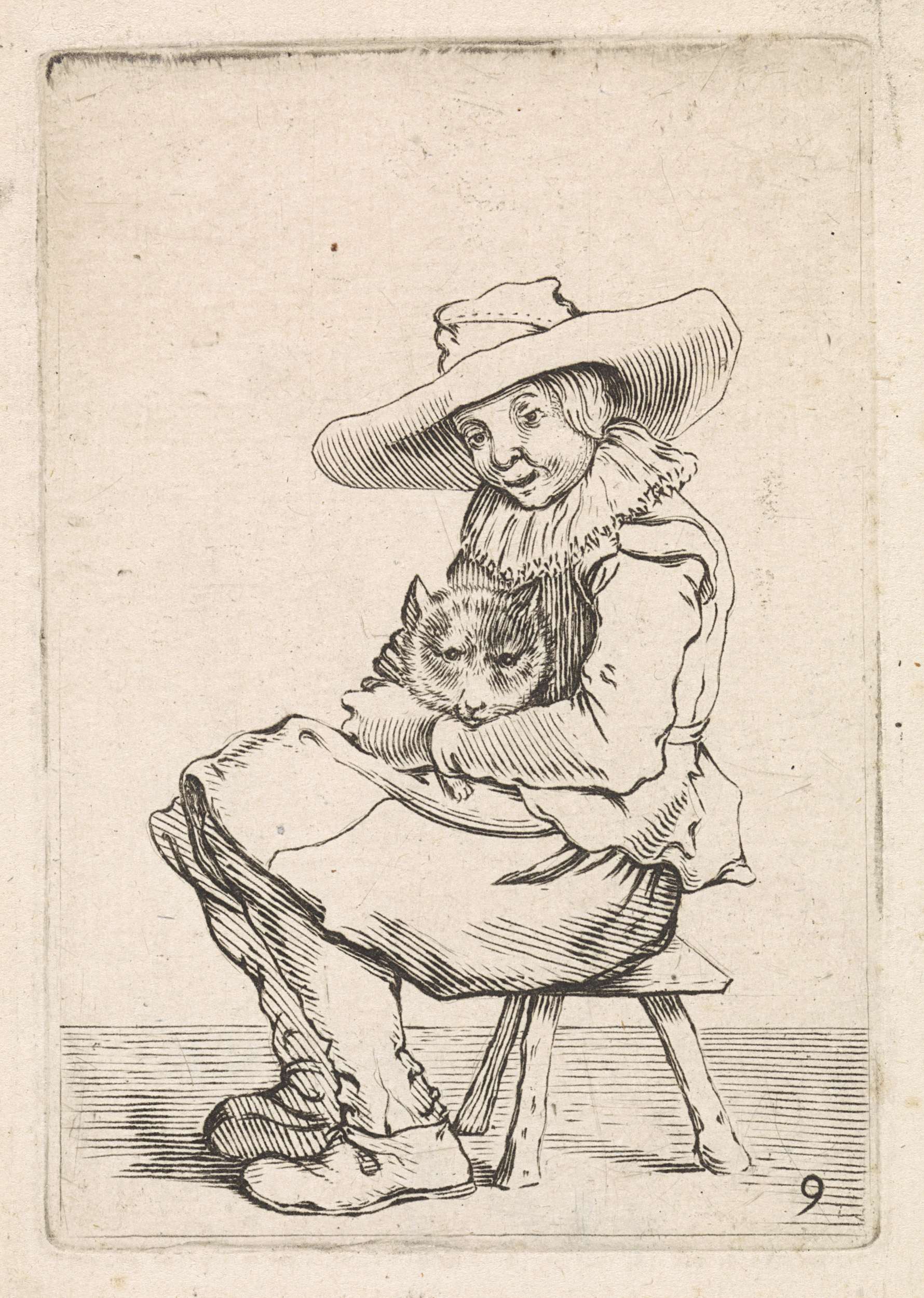 Zittende jongen met een poes op schoot