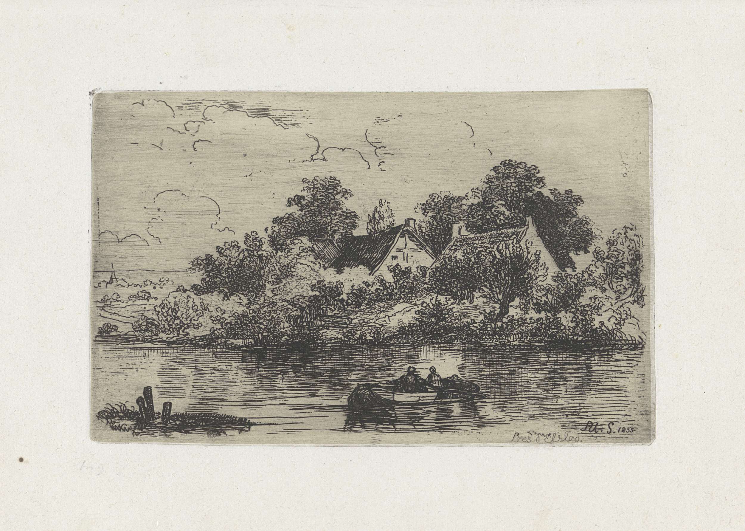 Waterrijk landschap met huizen aan de oever nabij El...