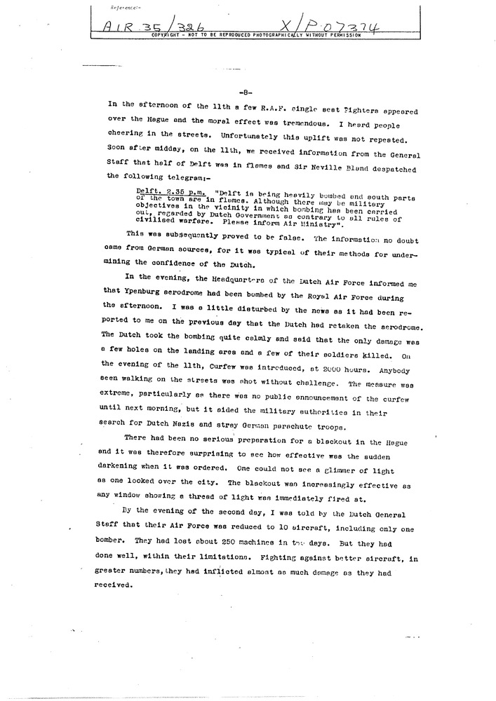 Report by Squadronleader A.A.Adams, assistent Air At...