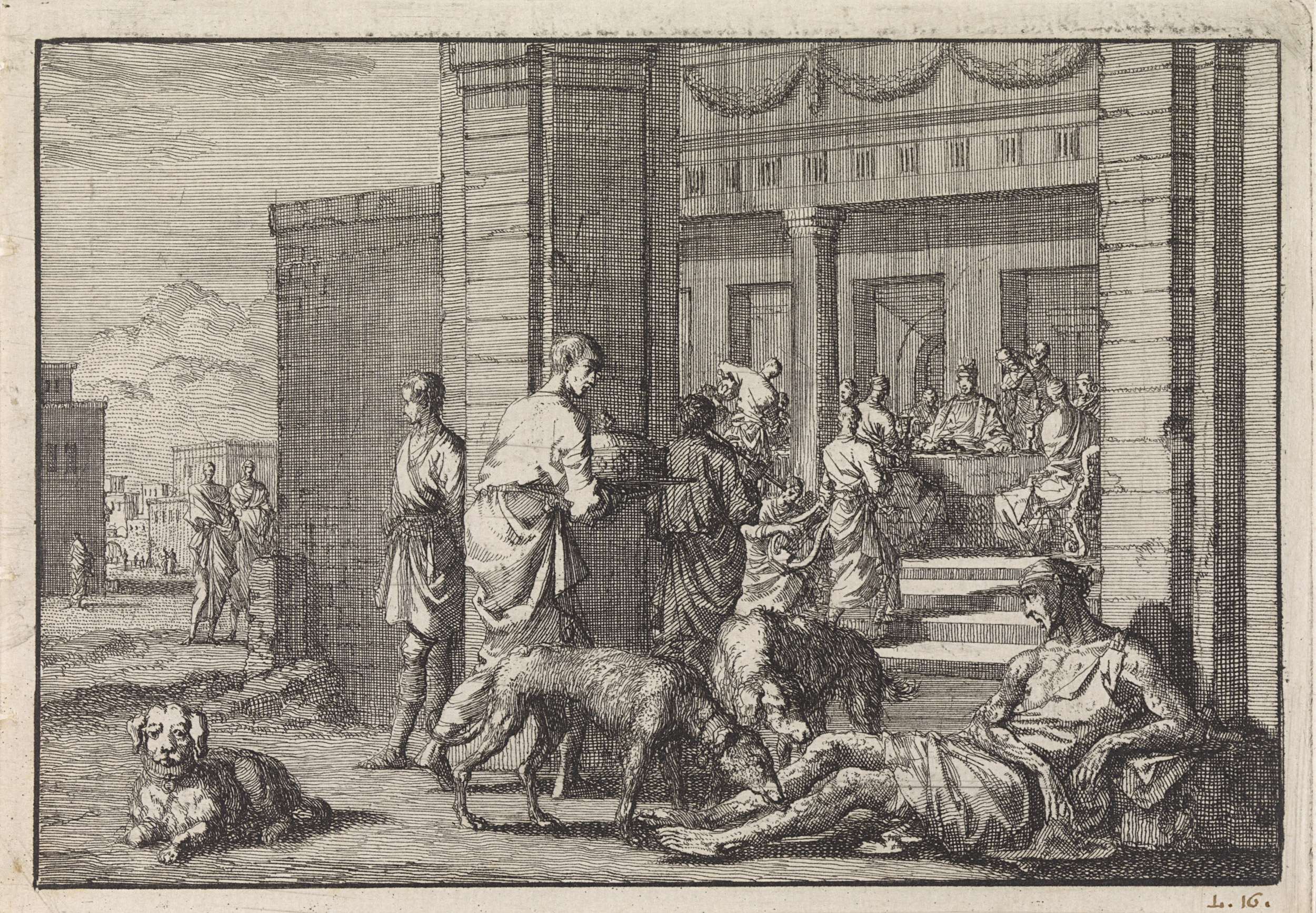 Lazarus bedelt aan de feestdis van de rijke man