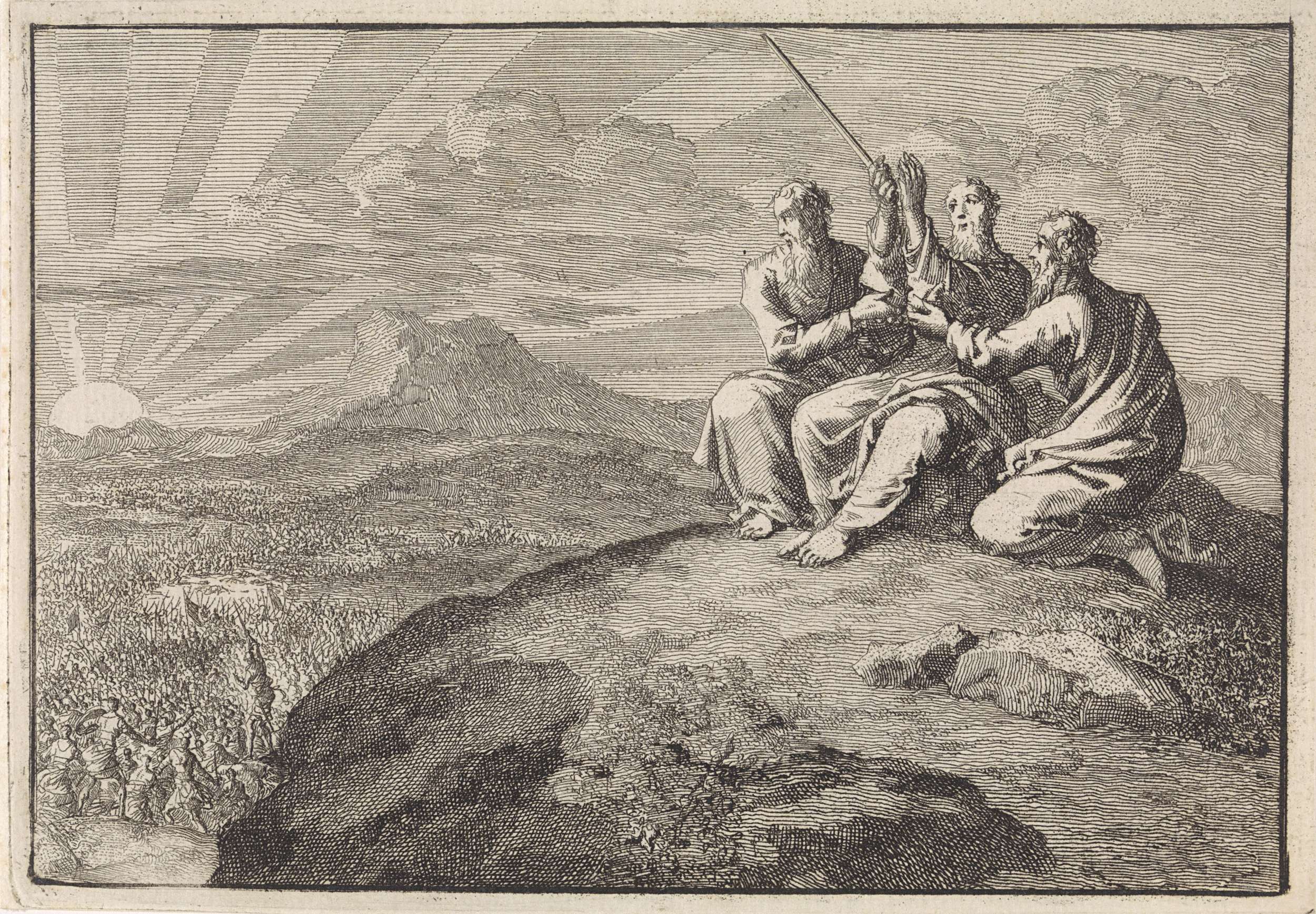 Aäron en Chur stutten Mozes' handen tijdens de strij...