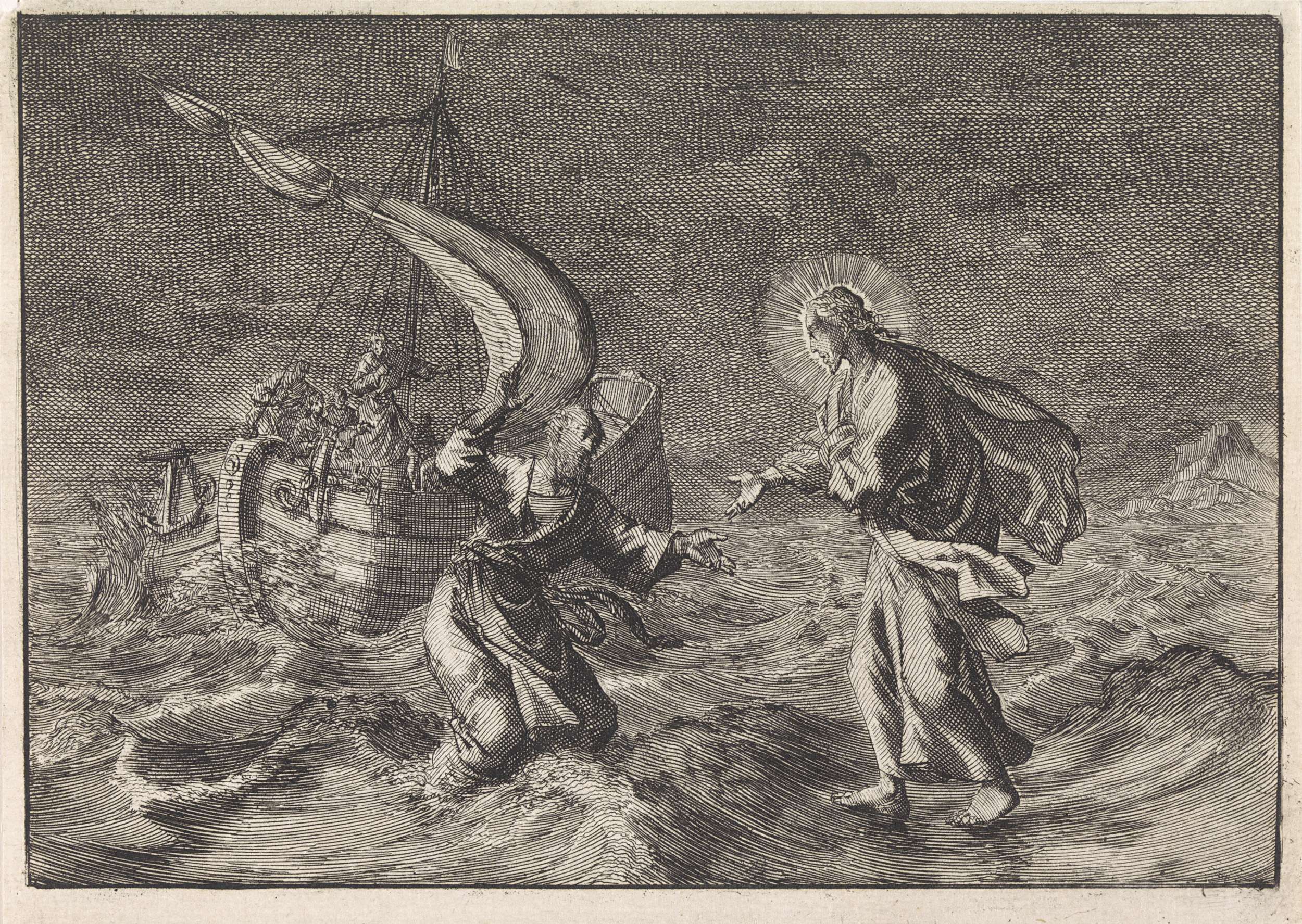 Christus loopt over het water tijdens een storm op h...