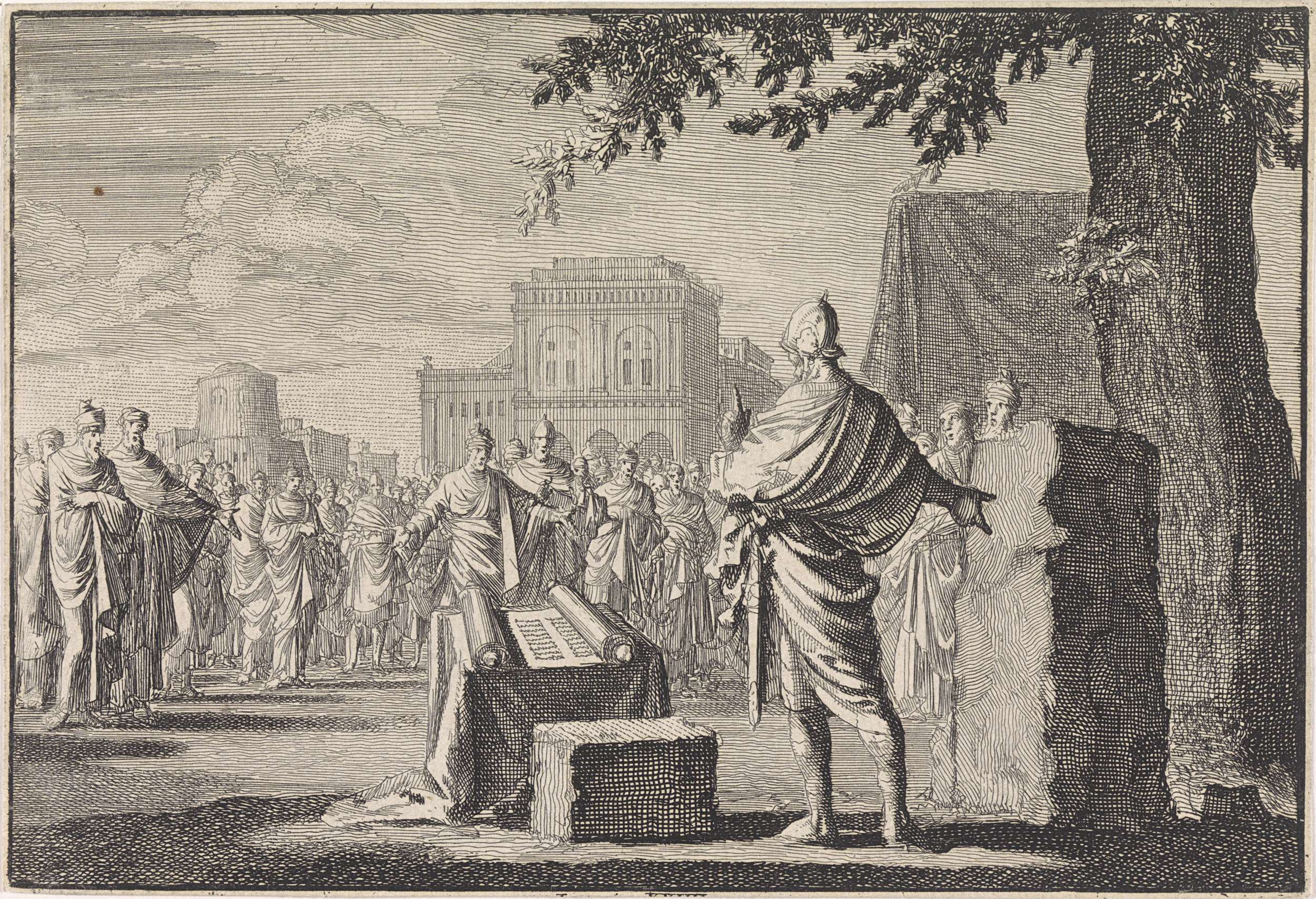 Jozua richt een gedenksteen op