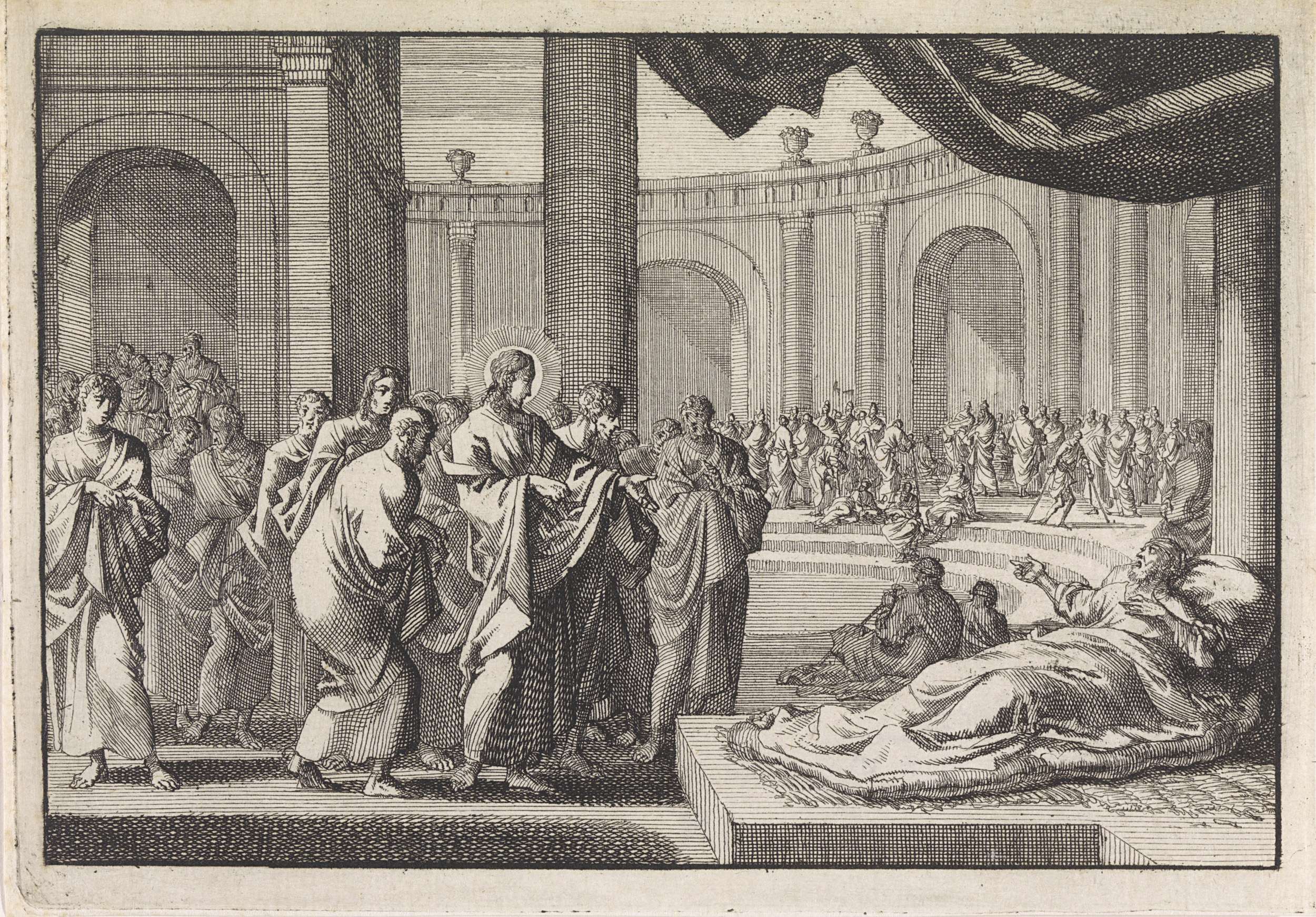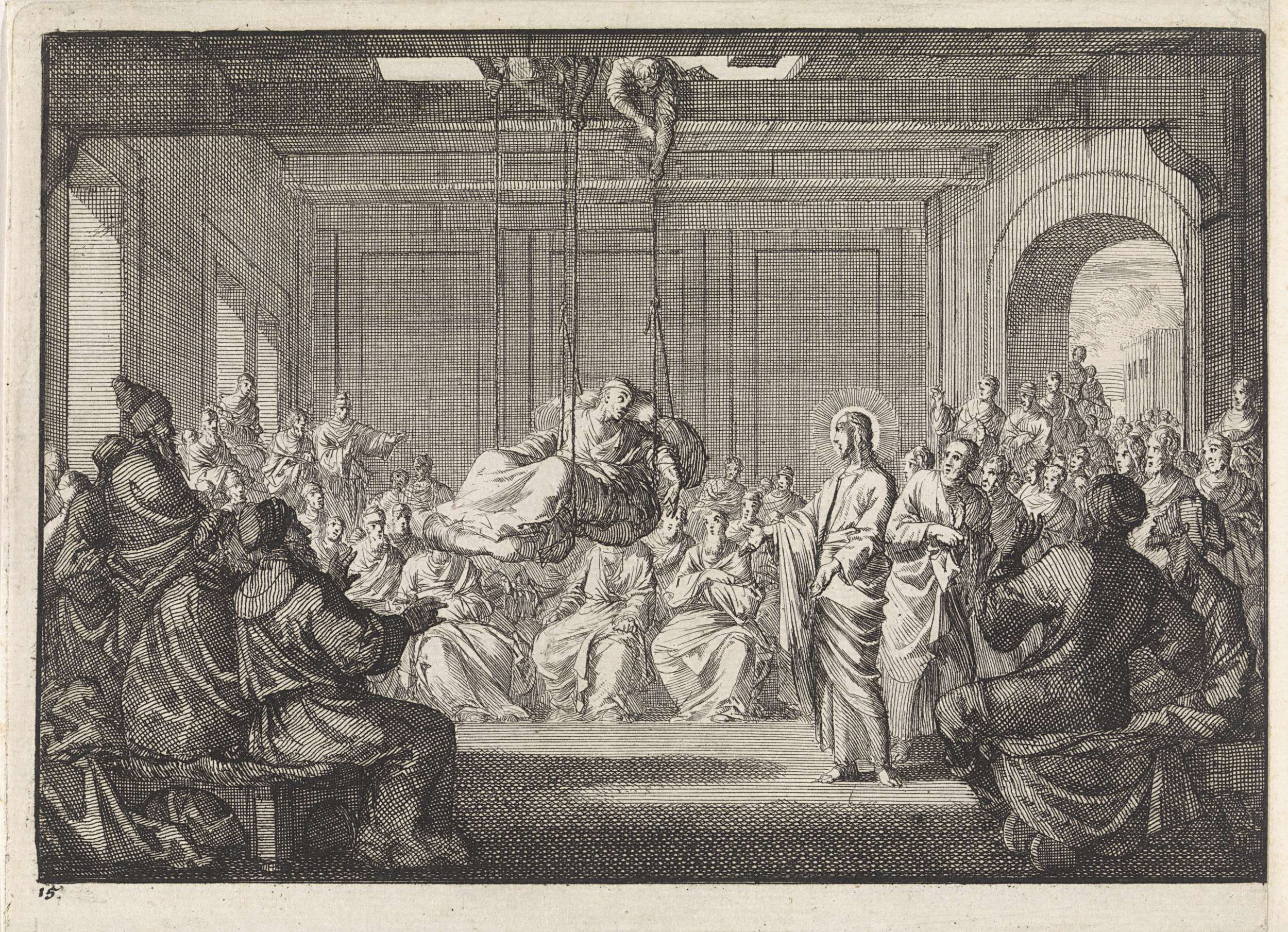 Christus geneest een verlamde man die door het dak w...