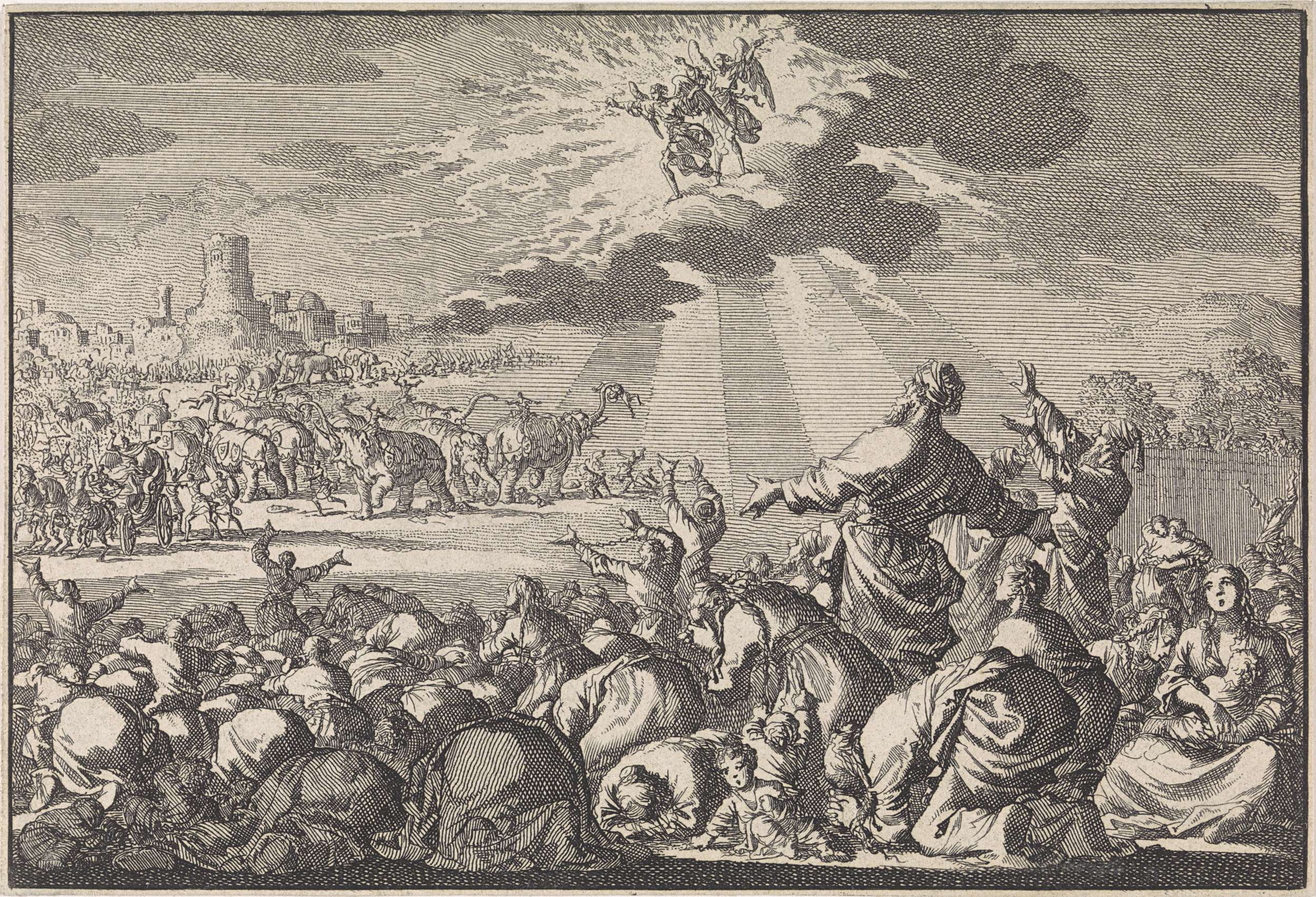 Twee engelen jagen de olifanten van Ptolemaeus Philo...