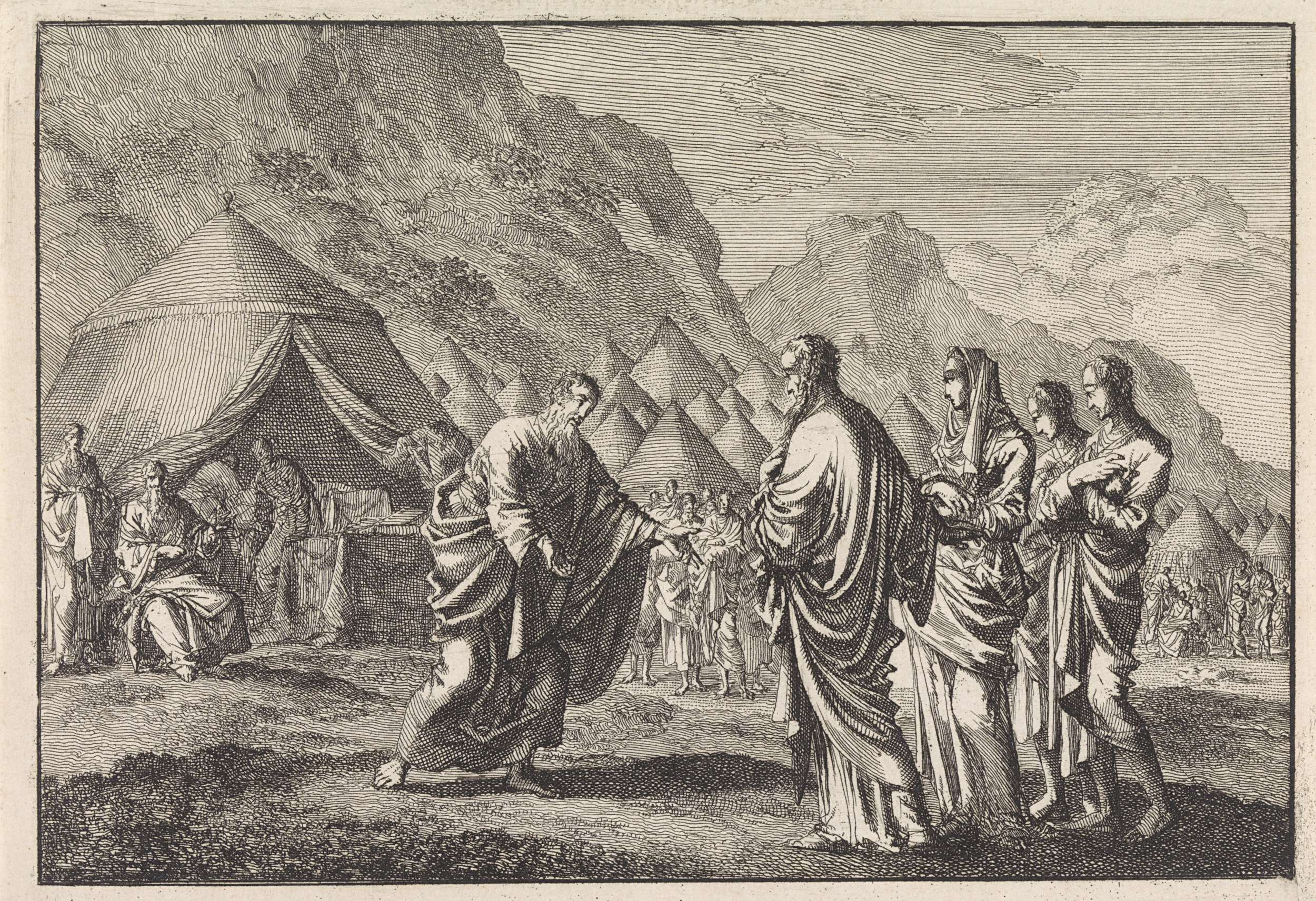Mozes ontvangt zijn schoonvader Jetro en zijn familie