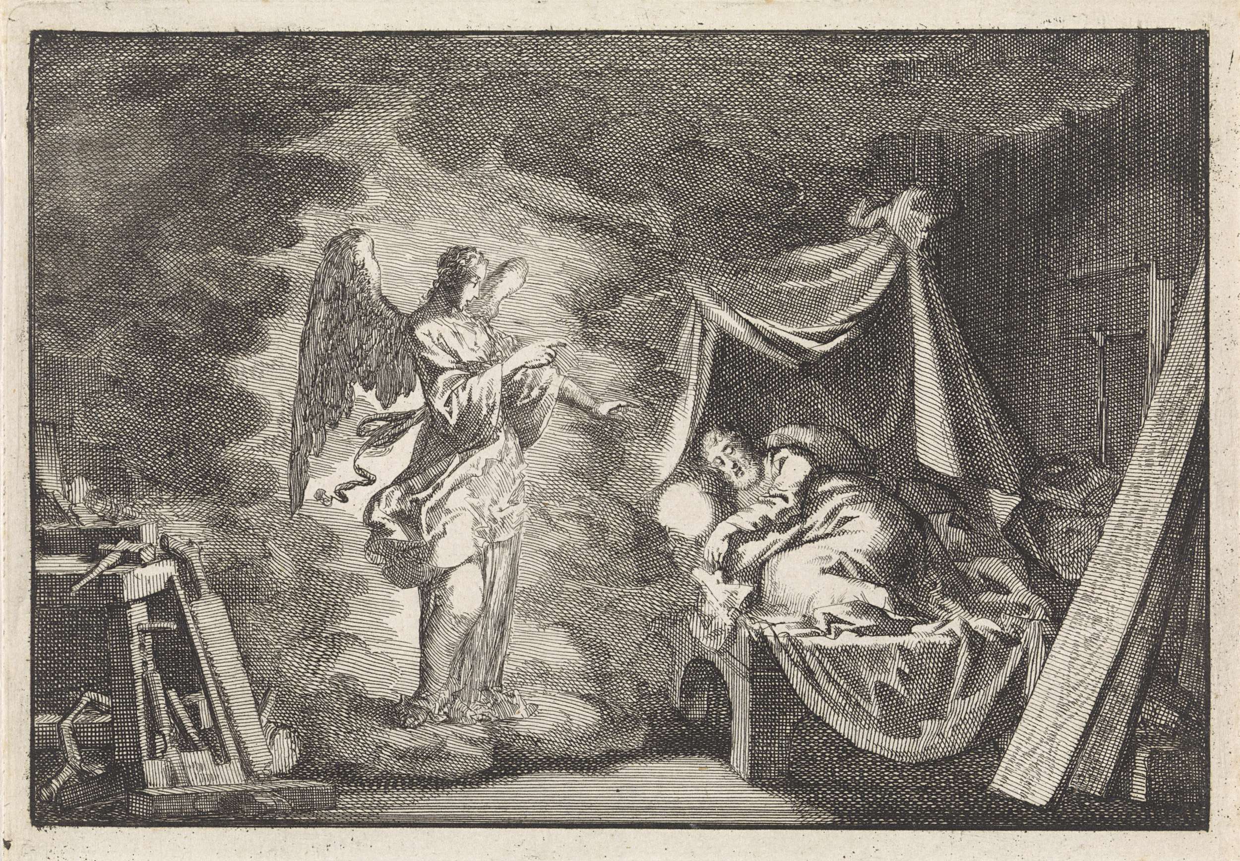 Engel verschijnt aan Jozef in zijn timmerwerkplaats