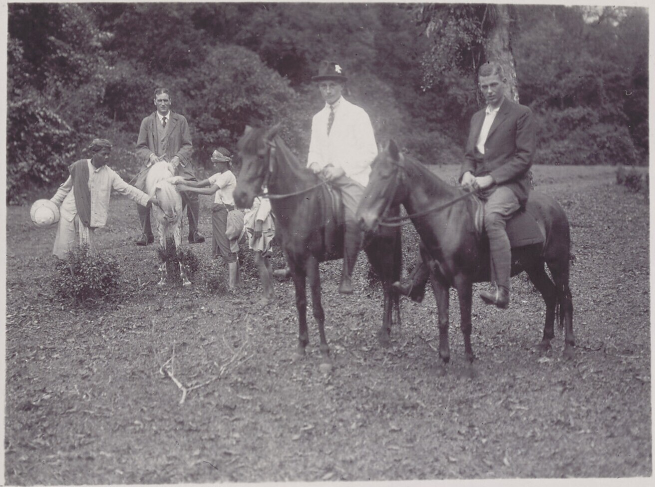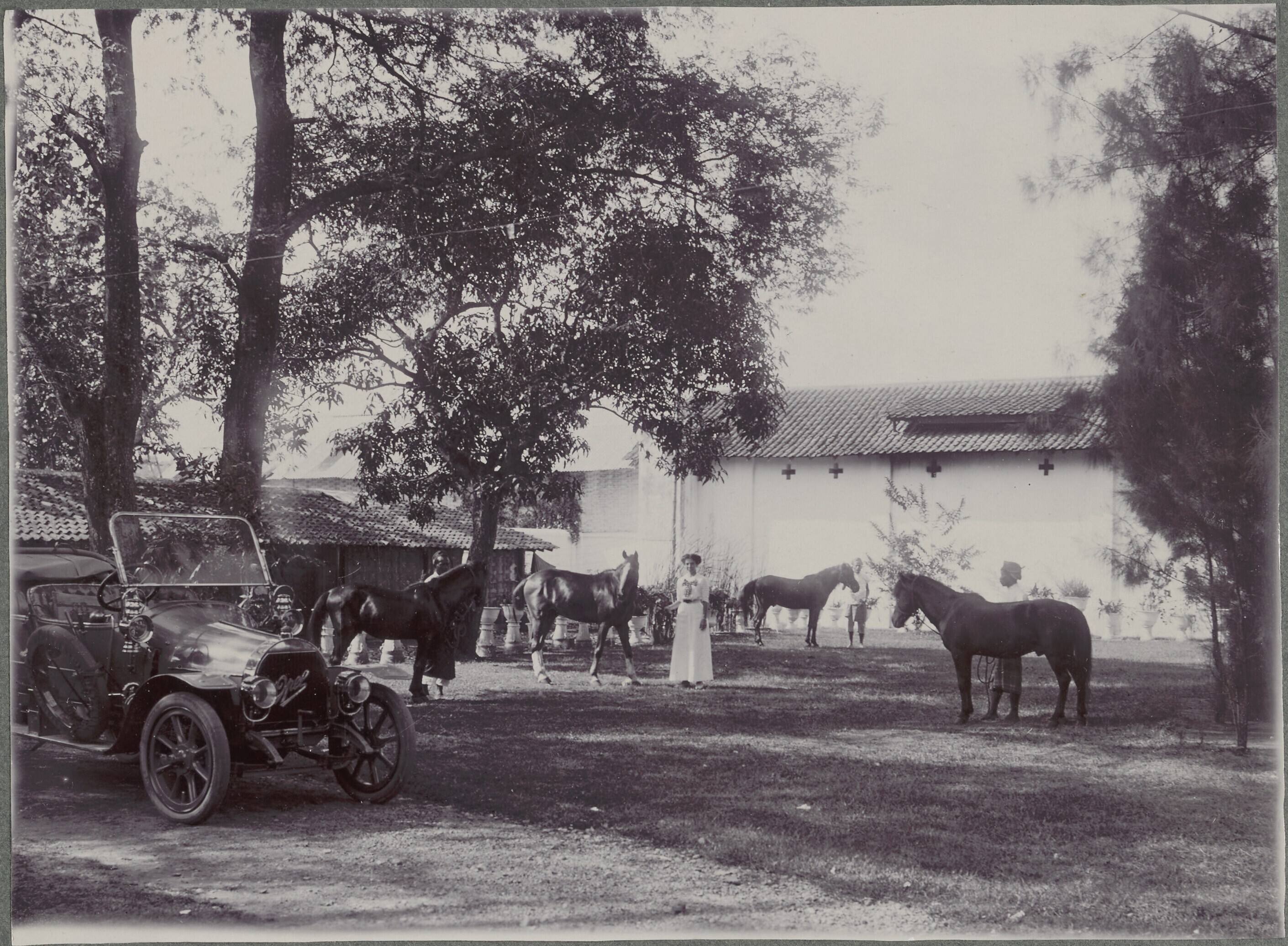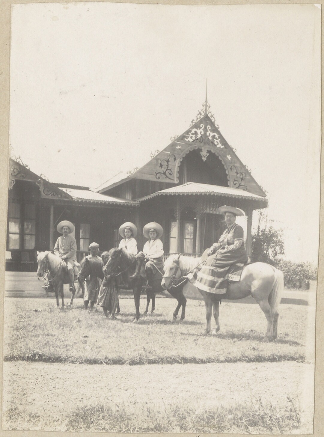 De familie D.A.P. Koning te paard voor Villa Cosmopolia