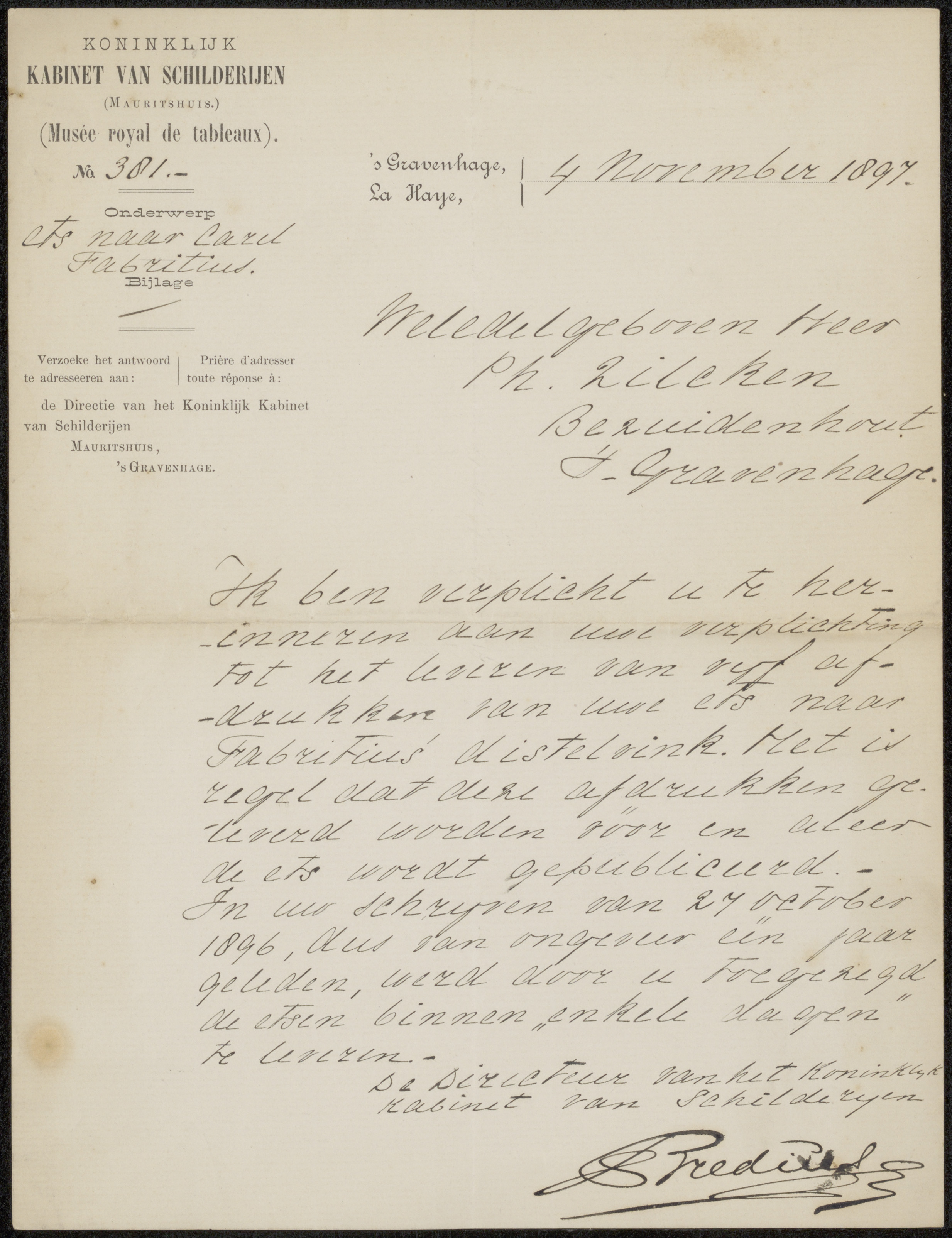 Brief aan Philip Zilcken
