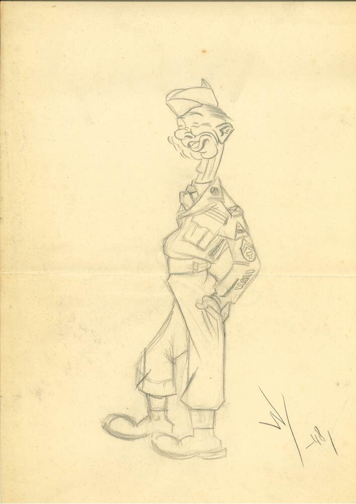 Tekening van geallieerde soldaat door Nieuwenhuys, 1...