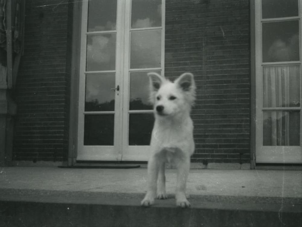 hondje voor deuren van gebouw