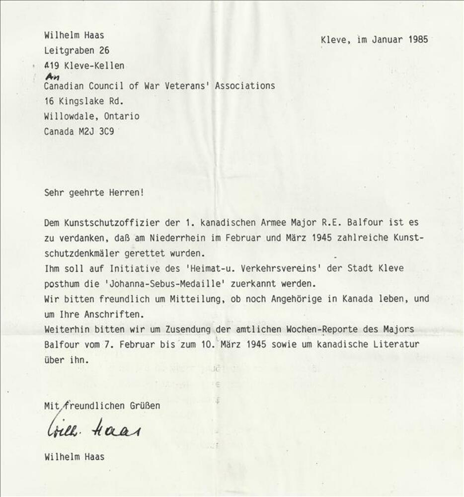 Brief van dhr Haas aan de Canadian Council of War Ve...