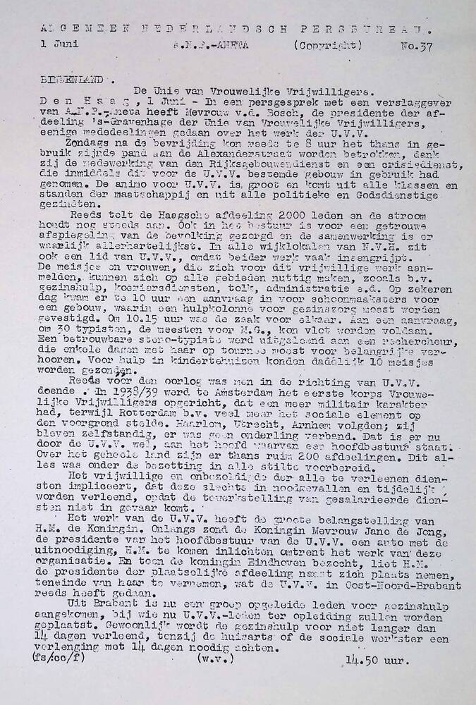 Algemeen Nederlandsch Persbureau, mededelingen, 1 ju...