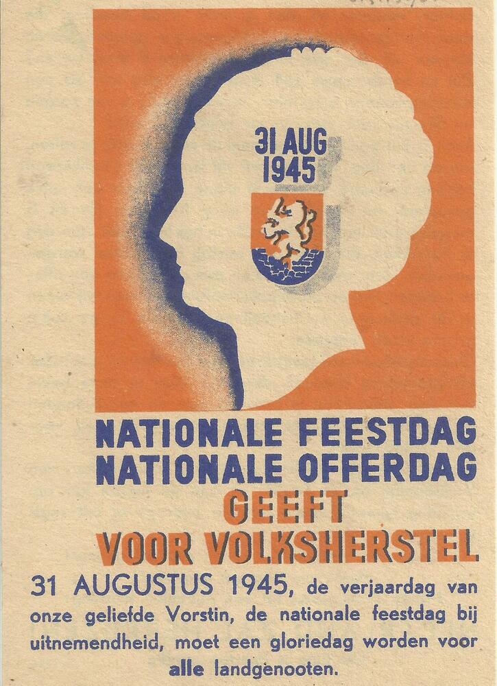 31 aug 1945. Nationale feestdag, nationale offerdag....