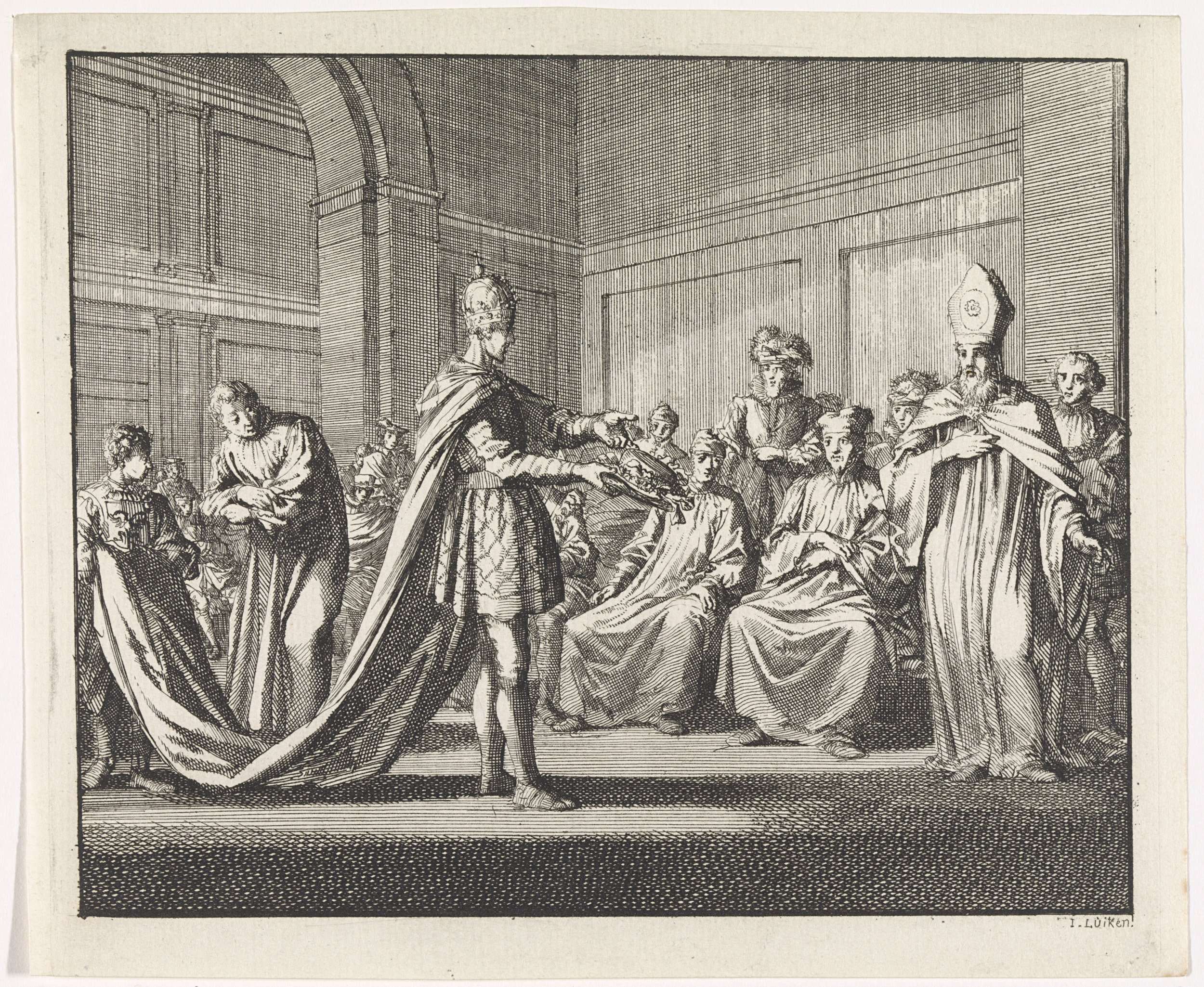 De keizer neemt een kanunnik zijn rijkelijk versierd...