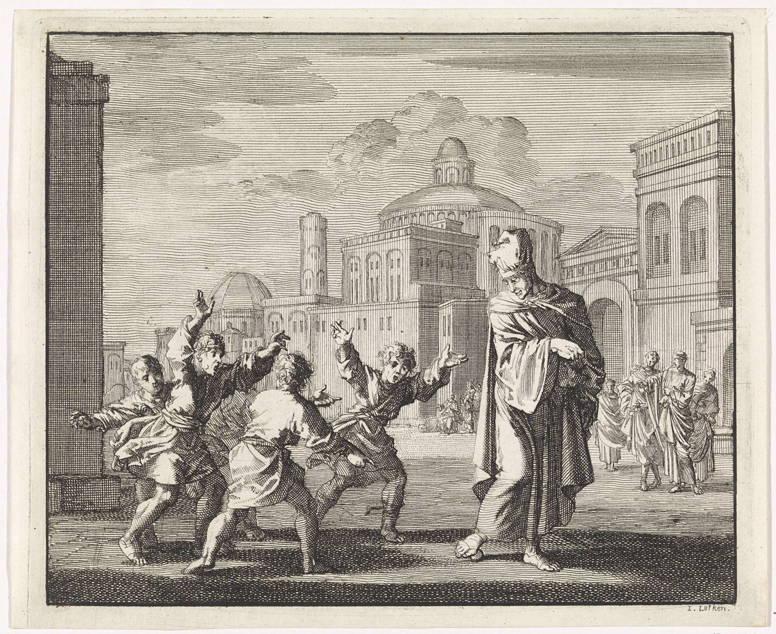 Prefect Orestes wordt door monniken bespot