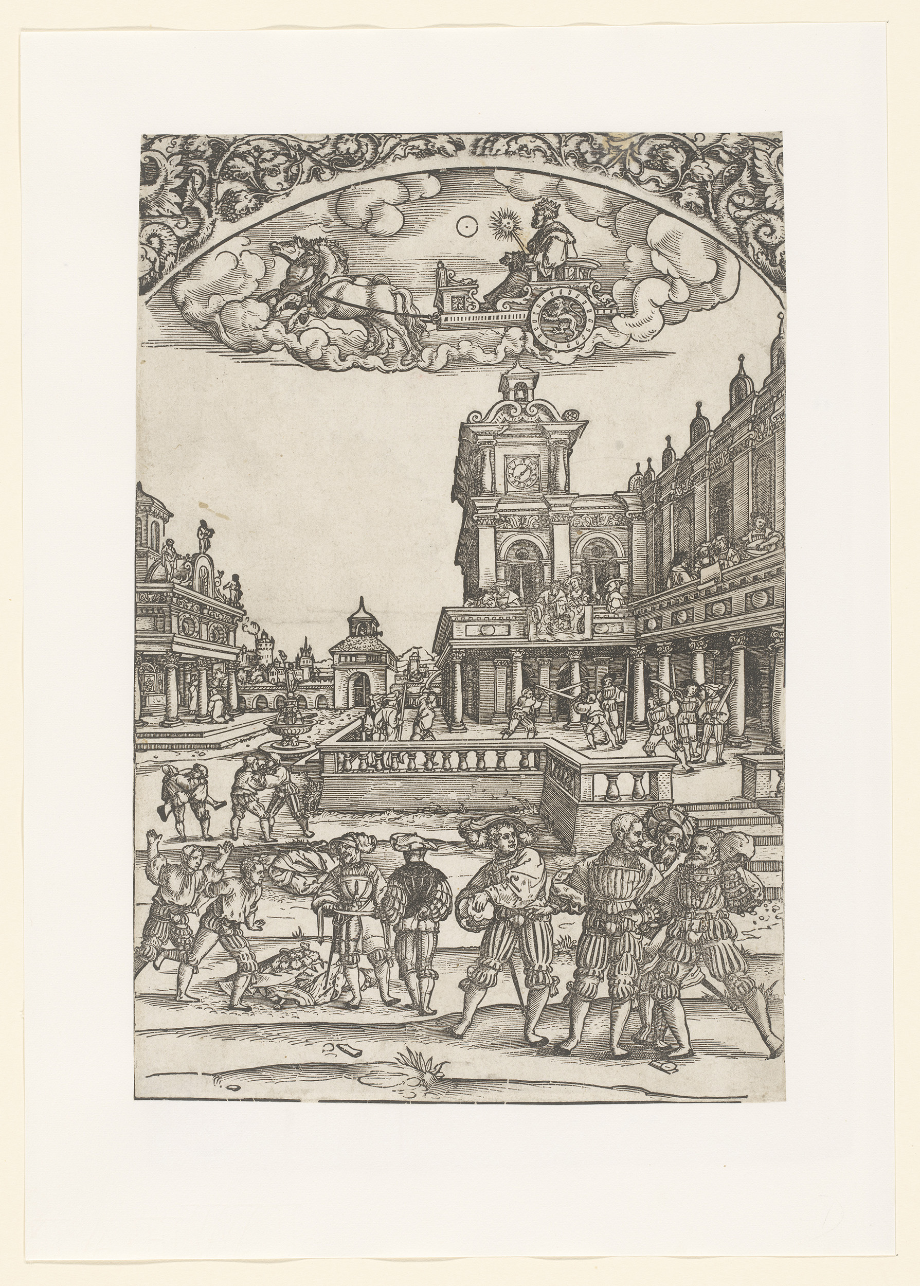 Sol in zijn triomfwagen, daaronder zijn planeetkinderen