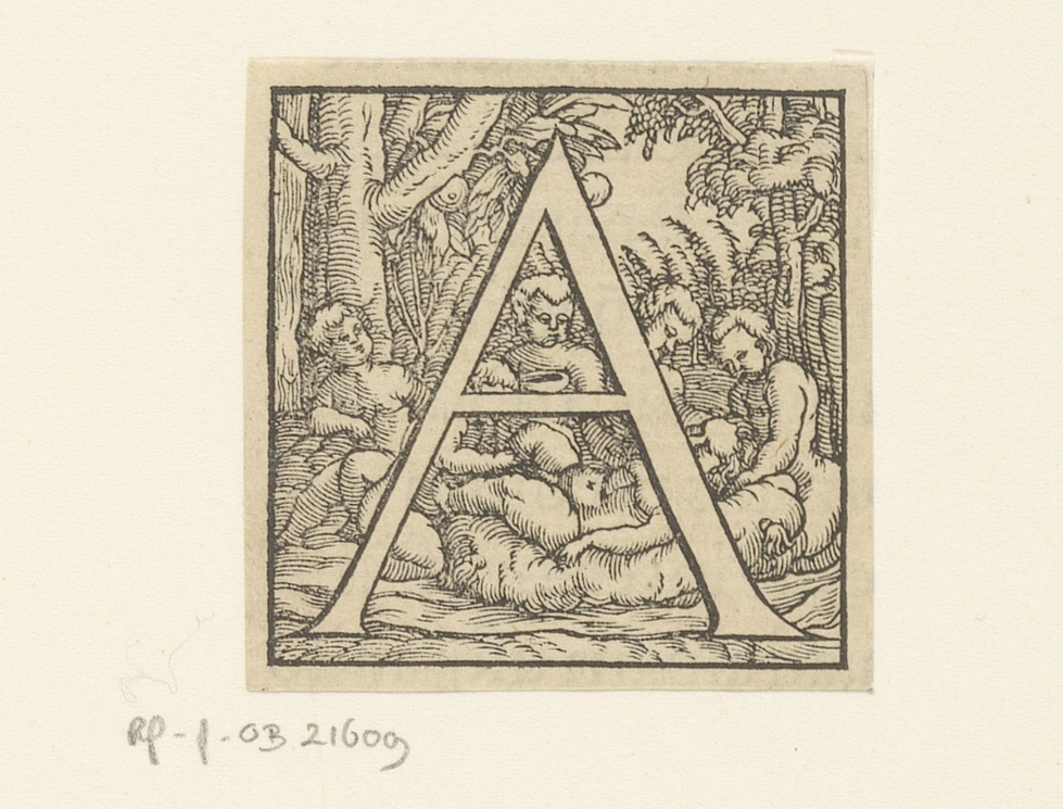 Letter A: kinderen rond een liggende vrouw