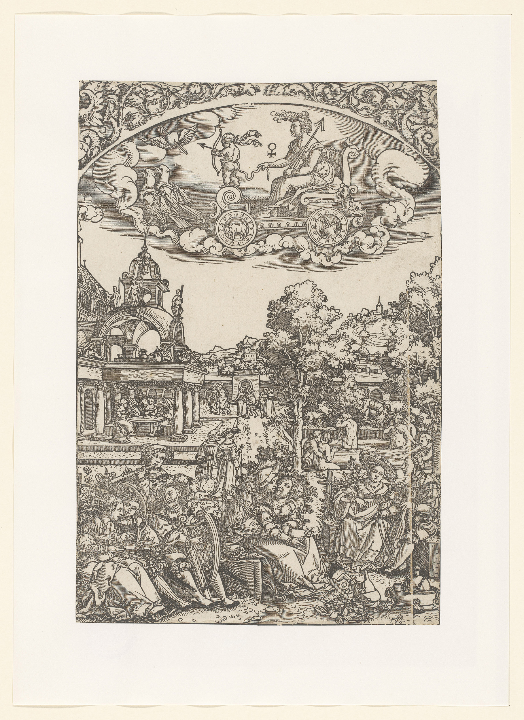 Venus in haar triomfwagen, daaronder haar planeetkin...