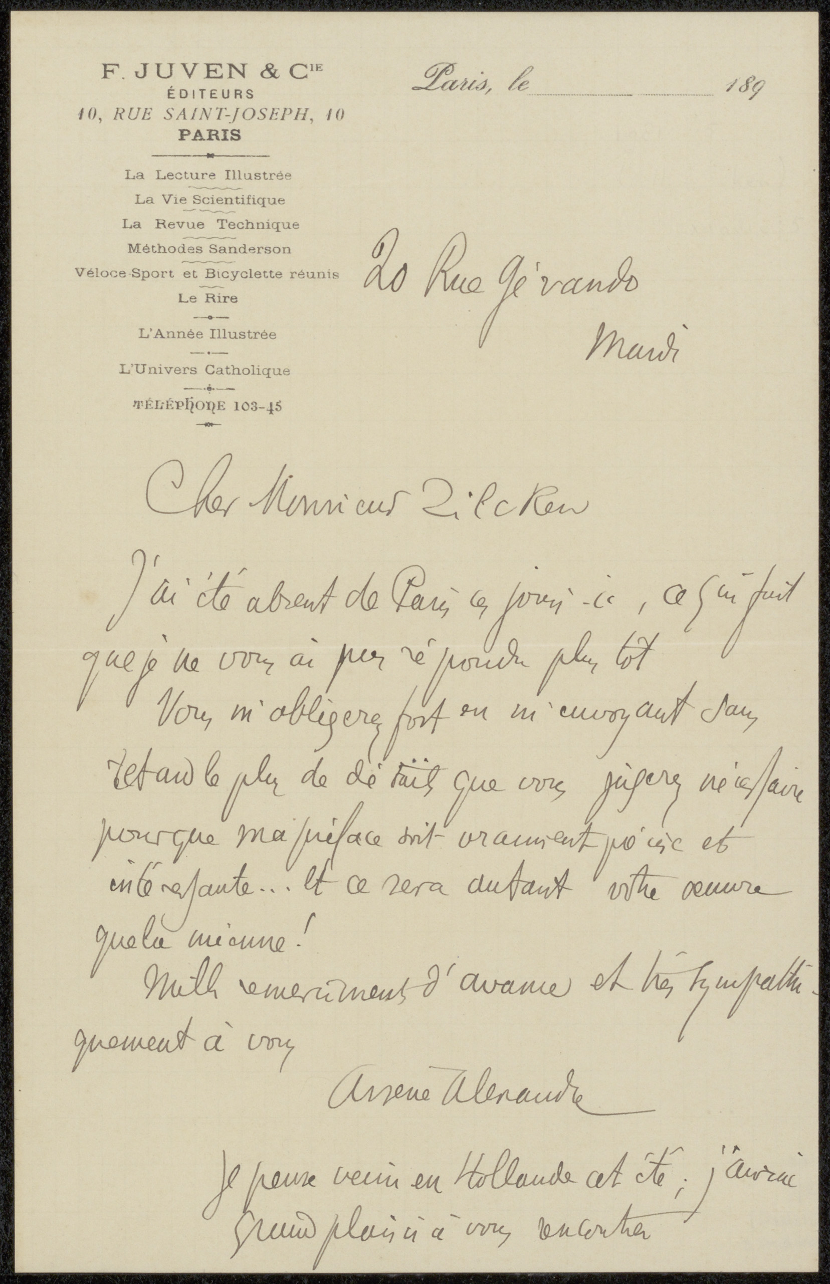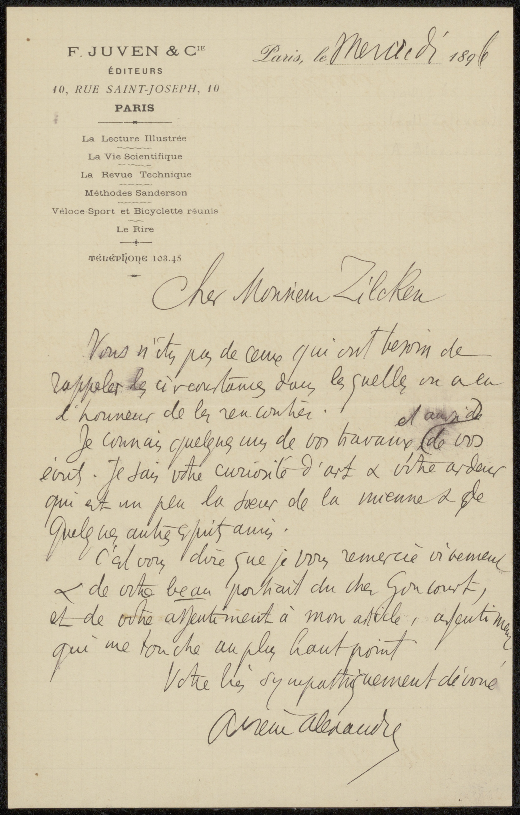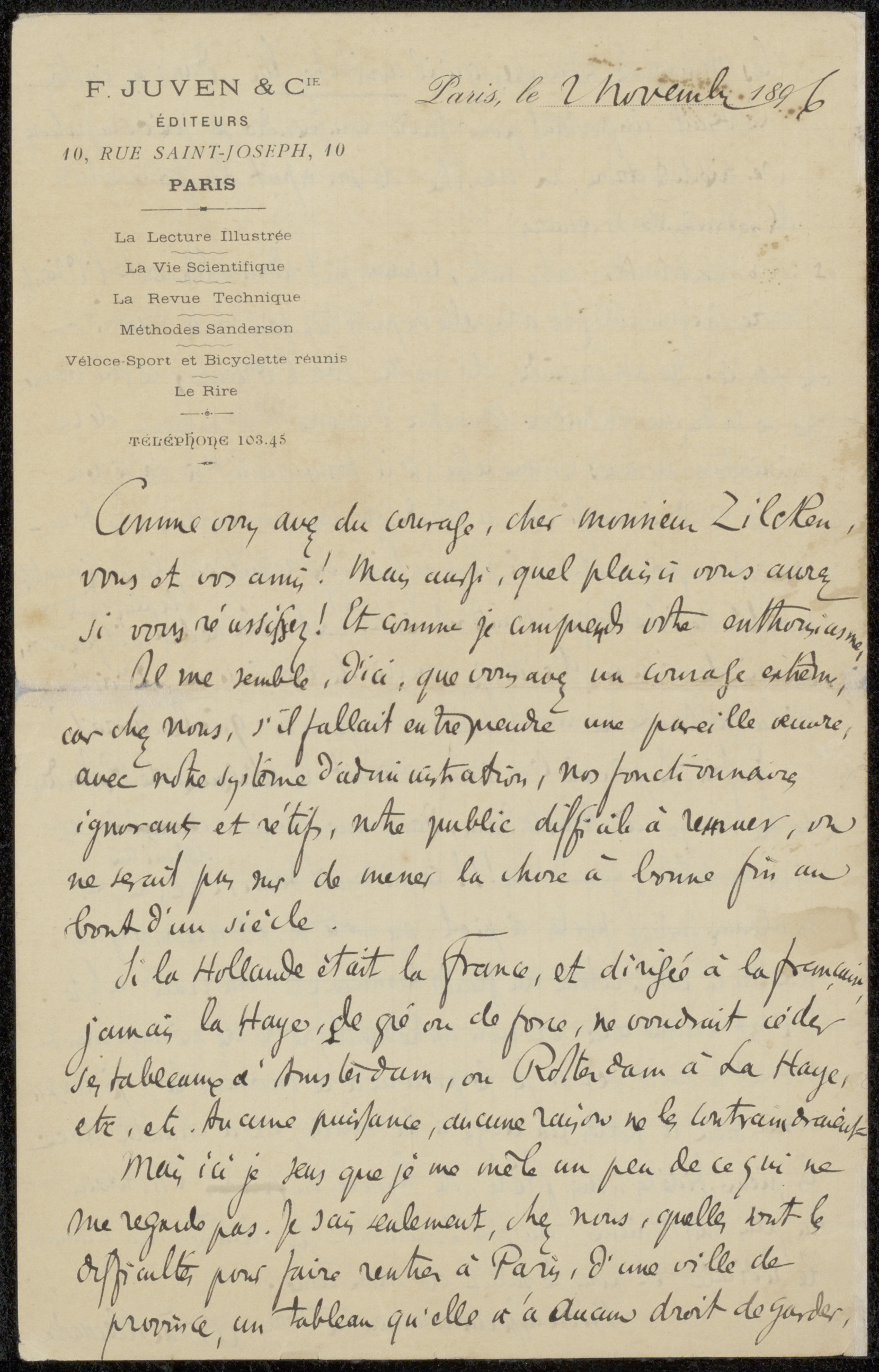 Brief aan Philip Zilcken