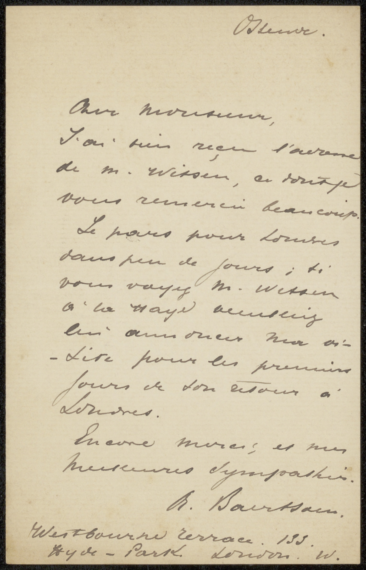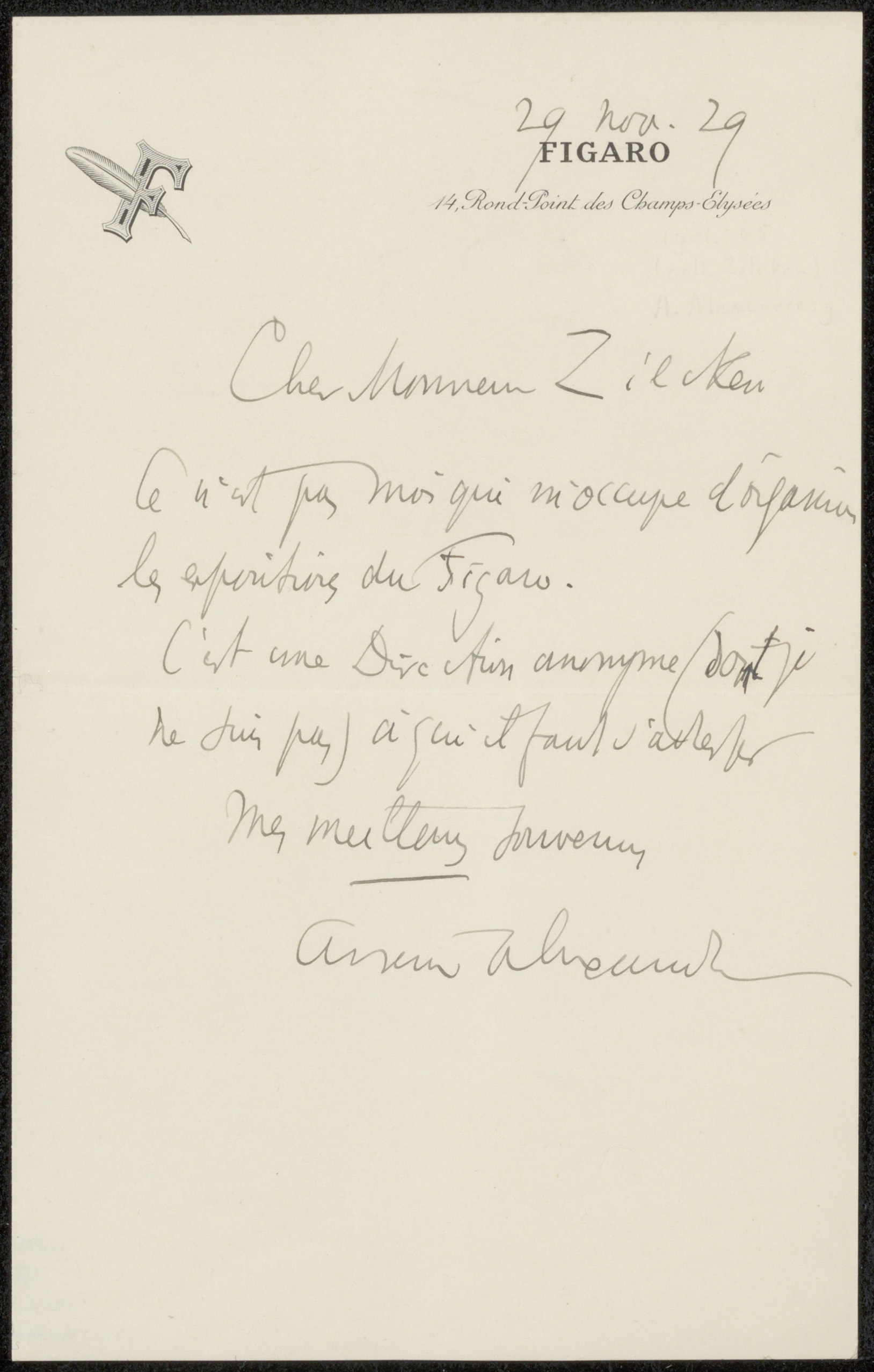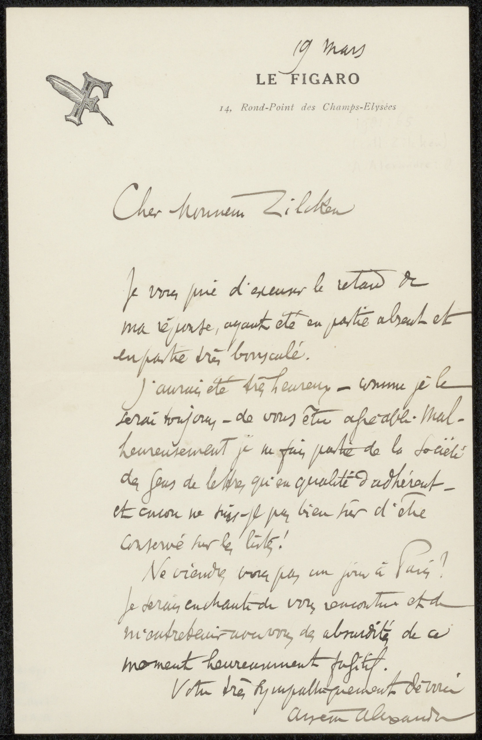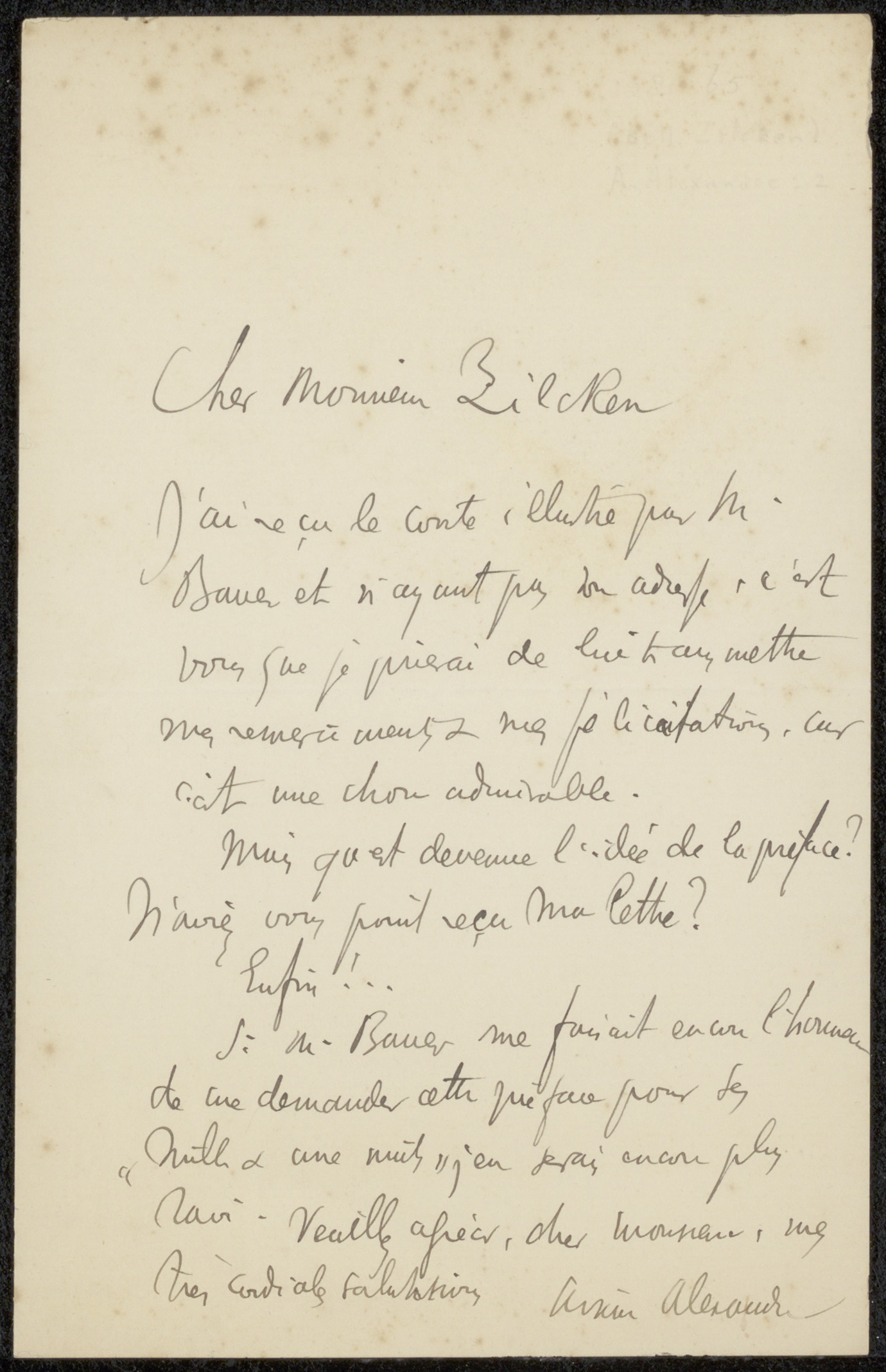 Brief uit archief Philip Zilcken