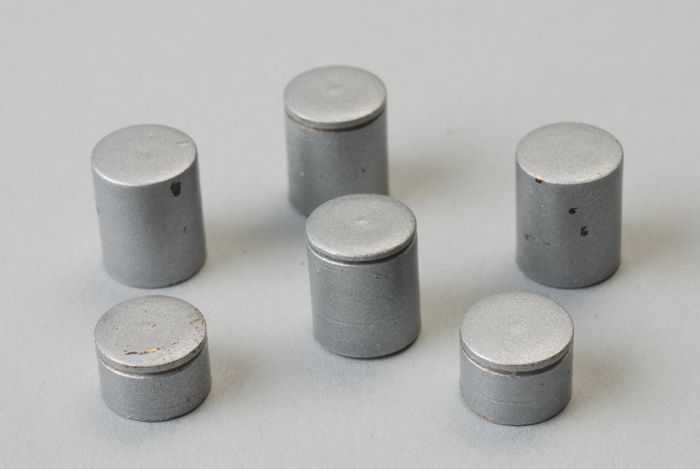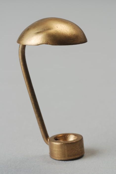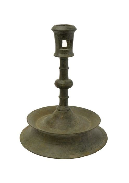 Geelkoperen kandelaar met lekbak in diabolovorm