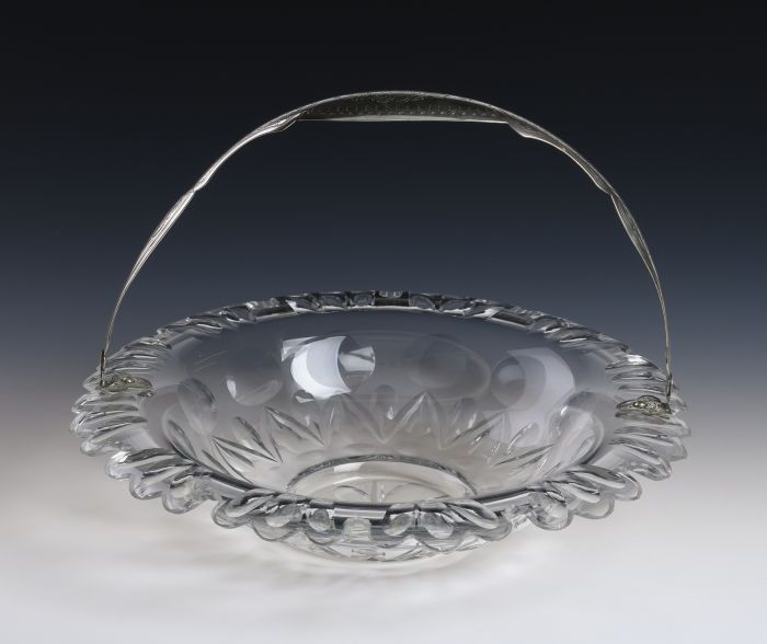 Ronde kristallen presenteerschaal met zilveren hengsel