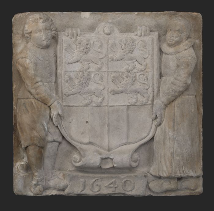 Gevelsteen met wapen van Rotterdam, met weesjongen e...