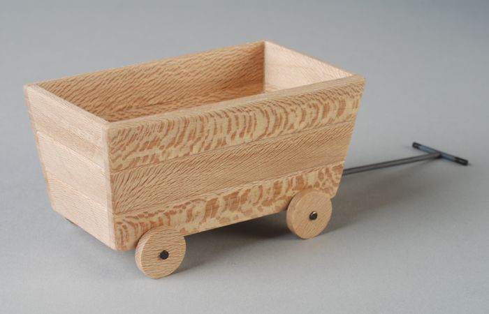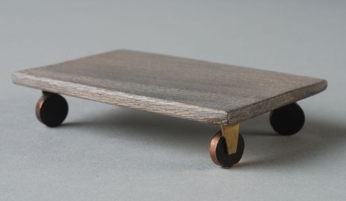 Zilveren miniatuur brandweerwagen op zwart houten vo...