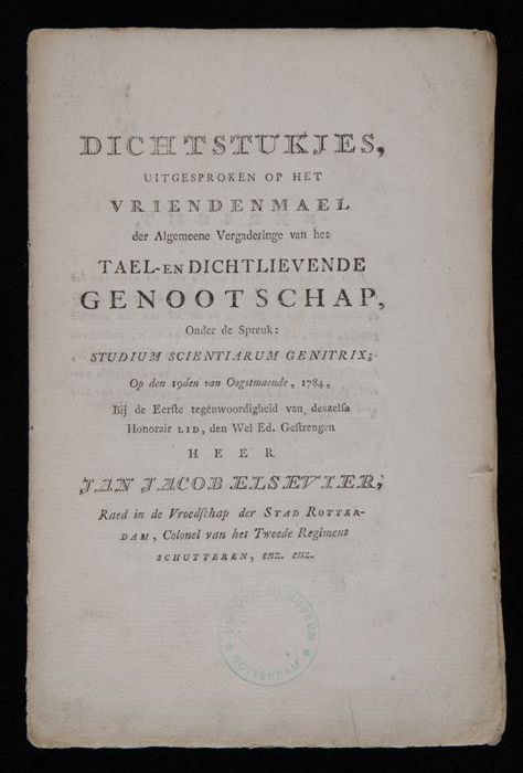 Koperen insculpatieplaat uit Rotterdam, 1786